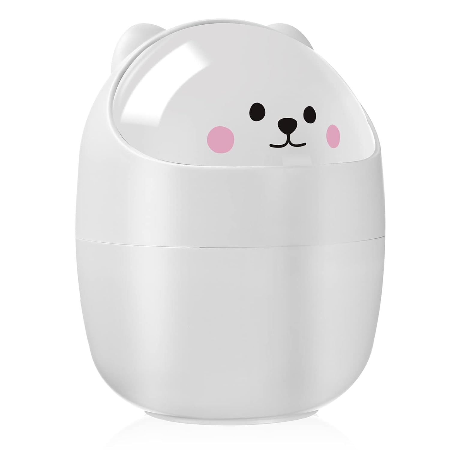 Cartoon Desktop Trash Can With Lid, Mini Desktop Trash Can Countertop Trash Cans
