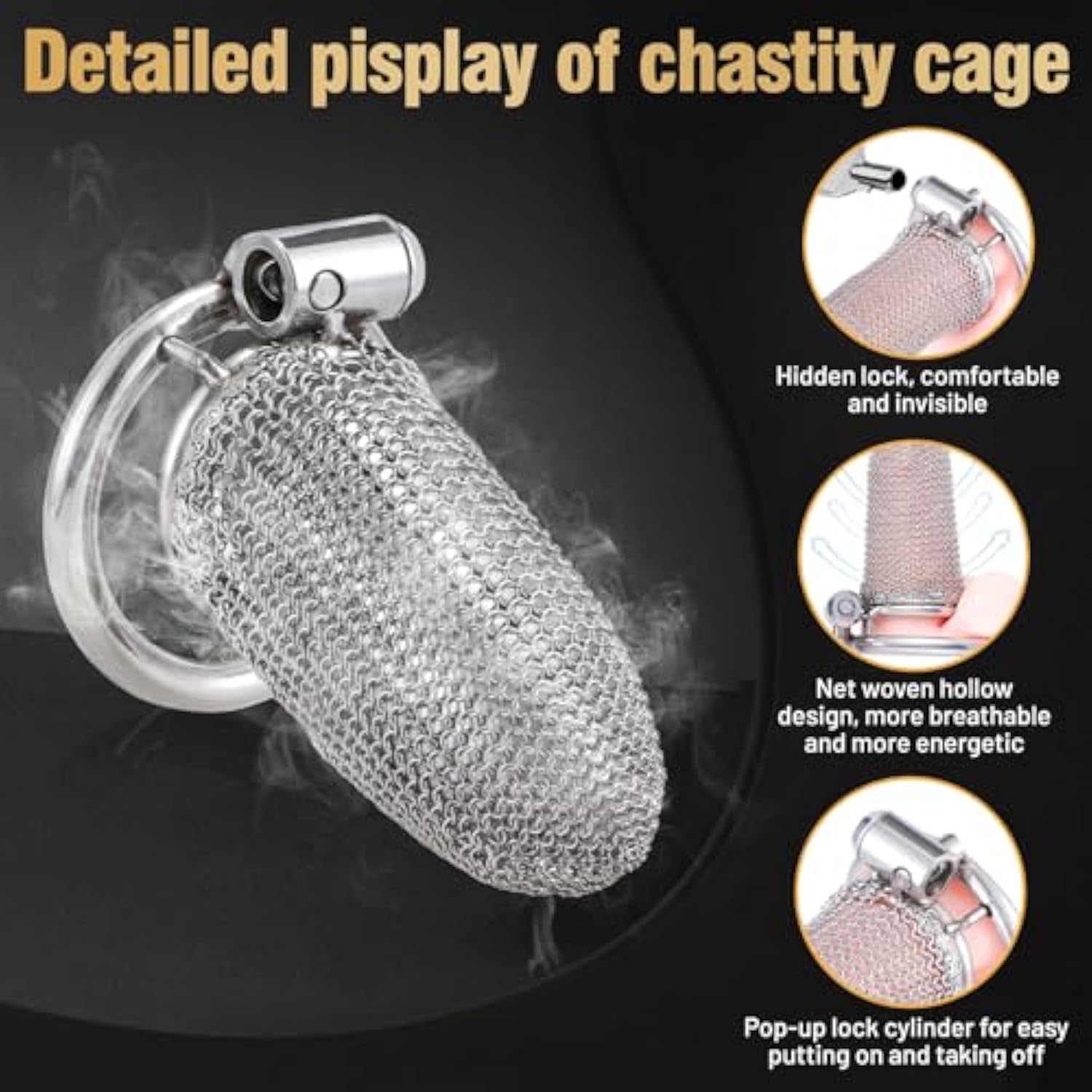 | Flexible Metal Chastity Cage: The Male Chastity Cage Is Made Of High-Quality Stainless Steel, Its Soft Metal Braid Is Comfortable To Wear And Good Ventilation. You Will Not Feel Uncomfortable Even If You Wear It For A Long Time | | Sizes To Meet Most People: Our Chastity Ring Comes In Three Sizes - 1.57 Inches/1.77 Inches/1.97 Inches, Please Choose According To Your Preference. The Package Includes 1 X Bottom Ring, 1 X Cage, 1 X Lock And 2 Keys | | Bondage Sense: The Mesh Design Chastity Cage Is Suitable For Daily Use.The Ultimate Tease Makes You Eager To Feel The Pleasure Of Perfect Release. Any Couple'S Bdsm Sex Toys Should Not Lack It.This Male Penis Device Fits Very Well, Which Also Means You Can Take It With You | | Safety And Waterproof: The Chastity Device Adopts An Ergonomic Design. The Chastity Cage Comes With A Lock Core, Saving Time And Effort, Which Will Not Rust And Is Easy To Clean | | Privacy : Our Penis Ring And Chastity Cage Set Will Be Packaged In Black Flannel, And Product Information Will Not Be Displayed In The Package | |