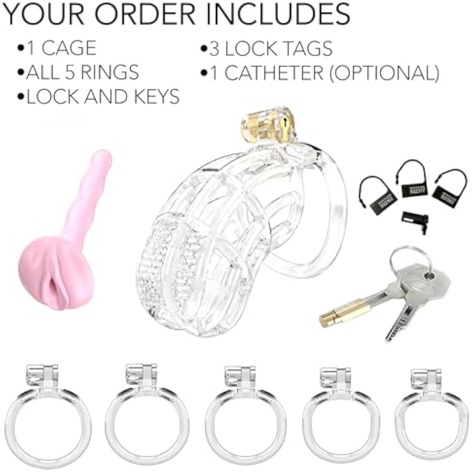 Chastity Device V3, Male Chastity Cage, Comfortable Nylon Resin Plastic Chastity Device, 3D Printed, 5 Sizes, Multiple Colors, Includes 5 Rings (Clear, X-Large)
