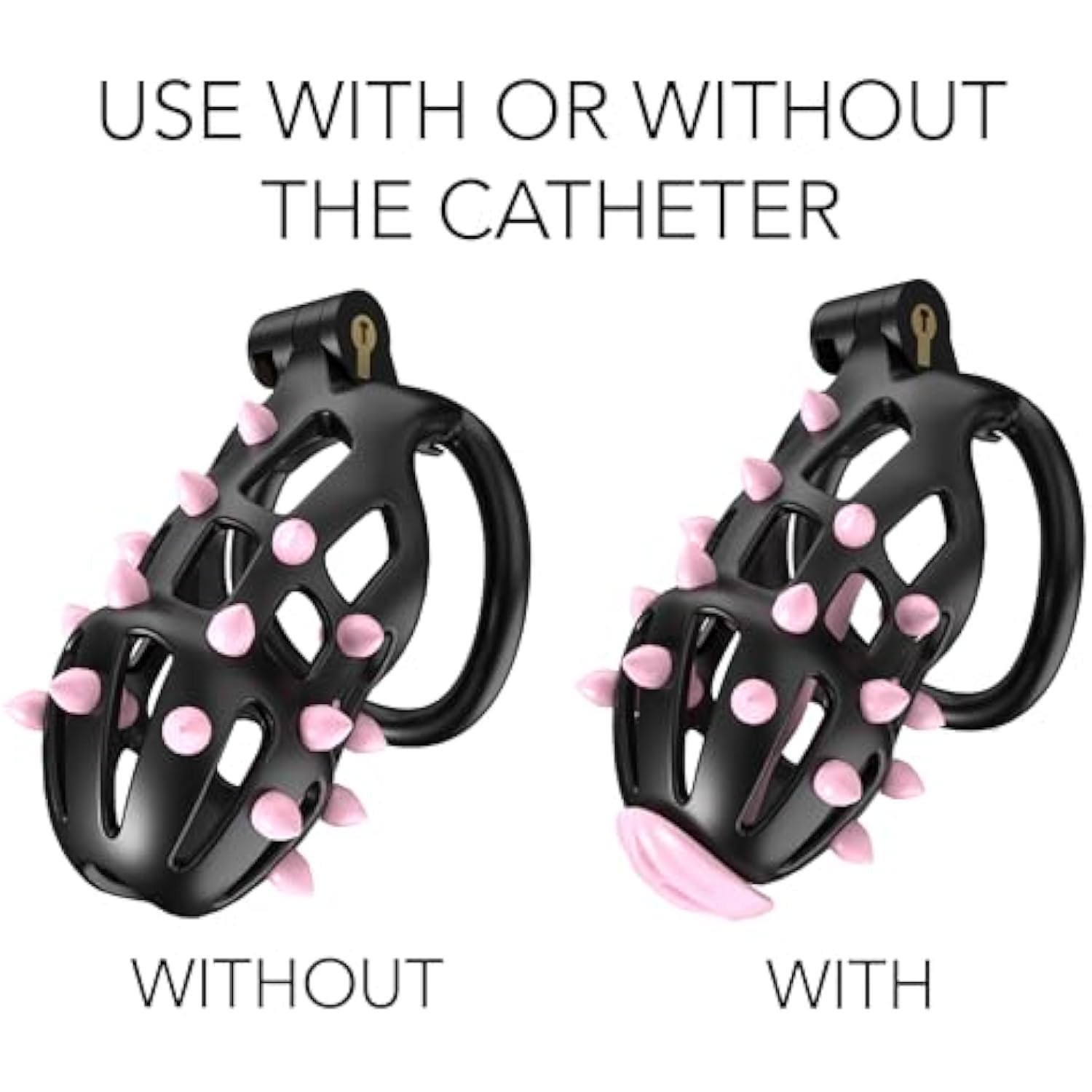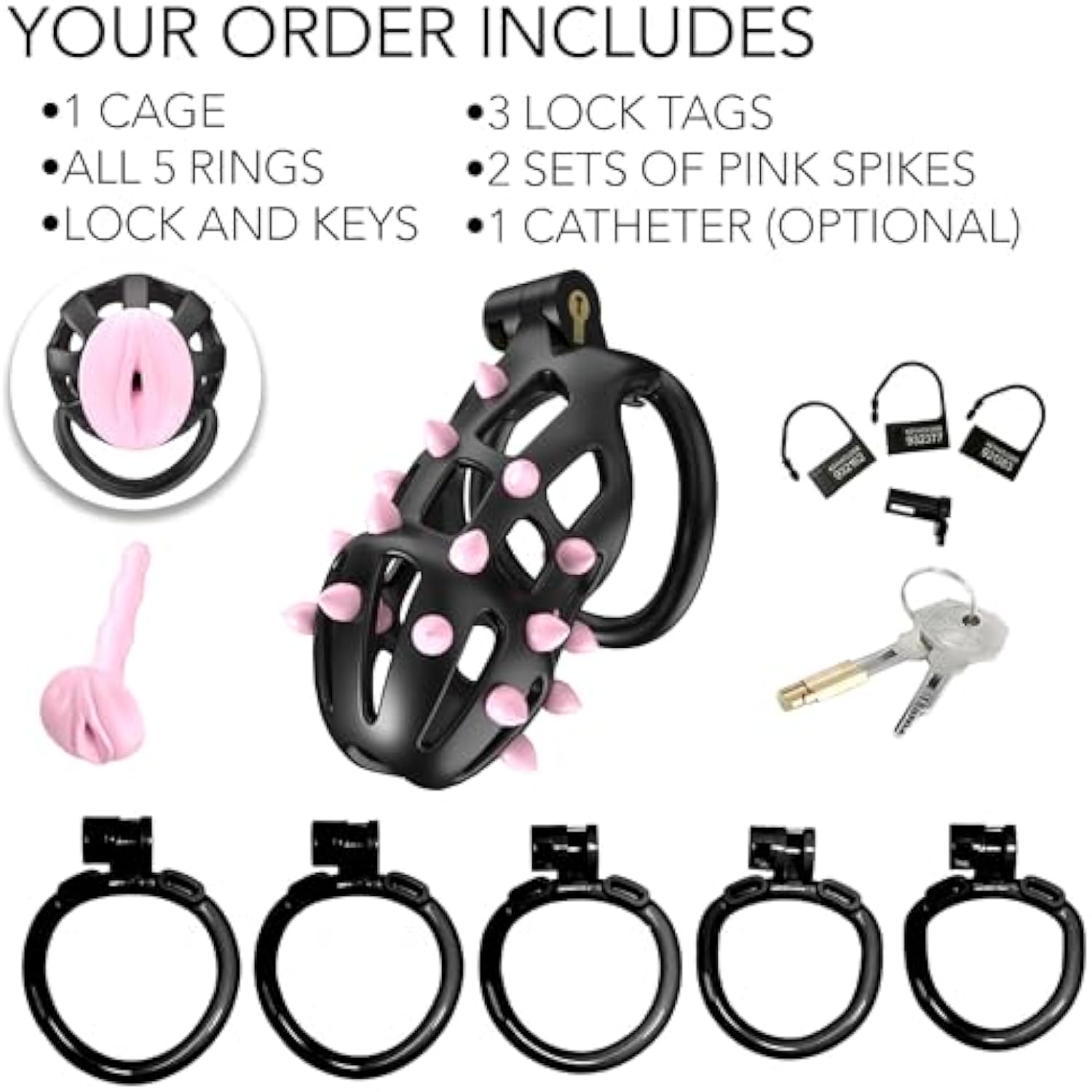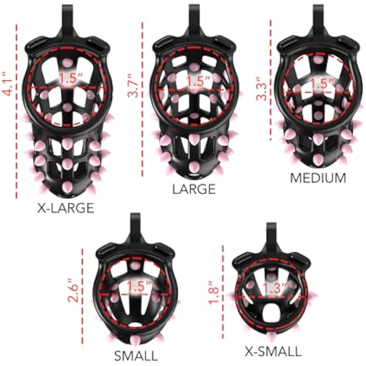 Chastity Device With Soft Spikes, Spiked Male Chastity Cage, Comfortable Nylon Resin Plastic Chastity Device, 3D Printed, 5 Sizes, Multiple Colors, Includes 5 Rings (Black, Small)