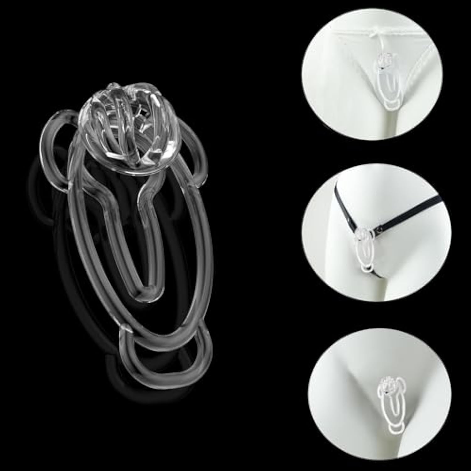 Chastity Training Clip, Fufu Chastity Clip Chastity Cage, Female Panties Chastity Belt, Cock Cage Bondage Clip Lock, Male Penis Ring Chastity Device, Sm Adult Sex Toy (Transparent)