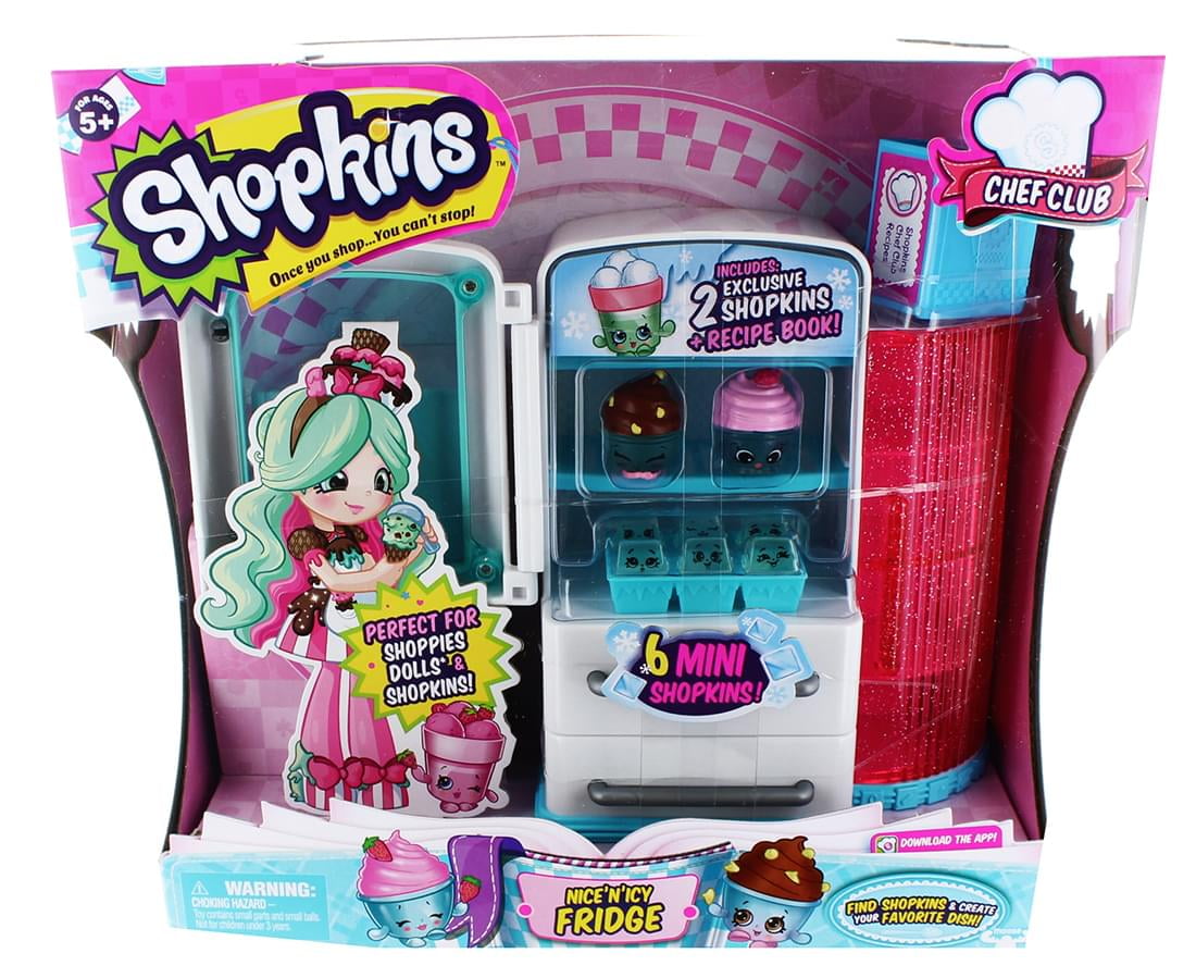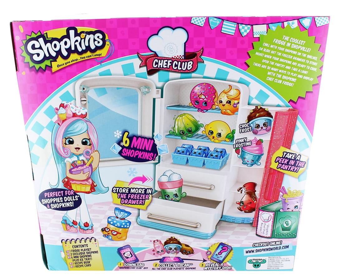 Where Do The Coolest Chef Club Shopkin Hang Out? At The Shopkin Frosty Fridge. Slide The Freezer Drawer Out The Discover Some Super Cool Mini Ice Cubes In Their Ice Tray. Store Your In The Pantry Cupboard So They'Re Ready To Use To Make Yummy Dishes! The Fridge Play Set Comes With Two Exclusive And Two Recipe Books! This Chef Club Playset Connects With Other Chef Club Play Sets To Create The Chef Club Kitchen!