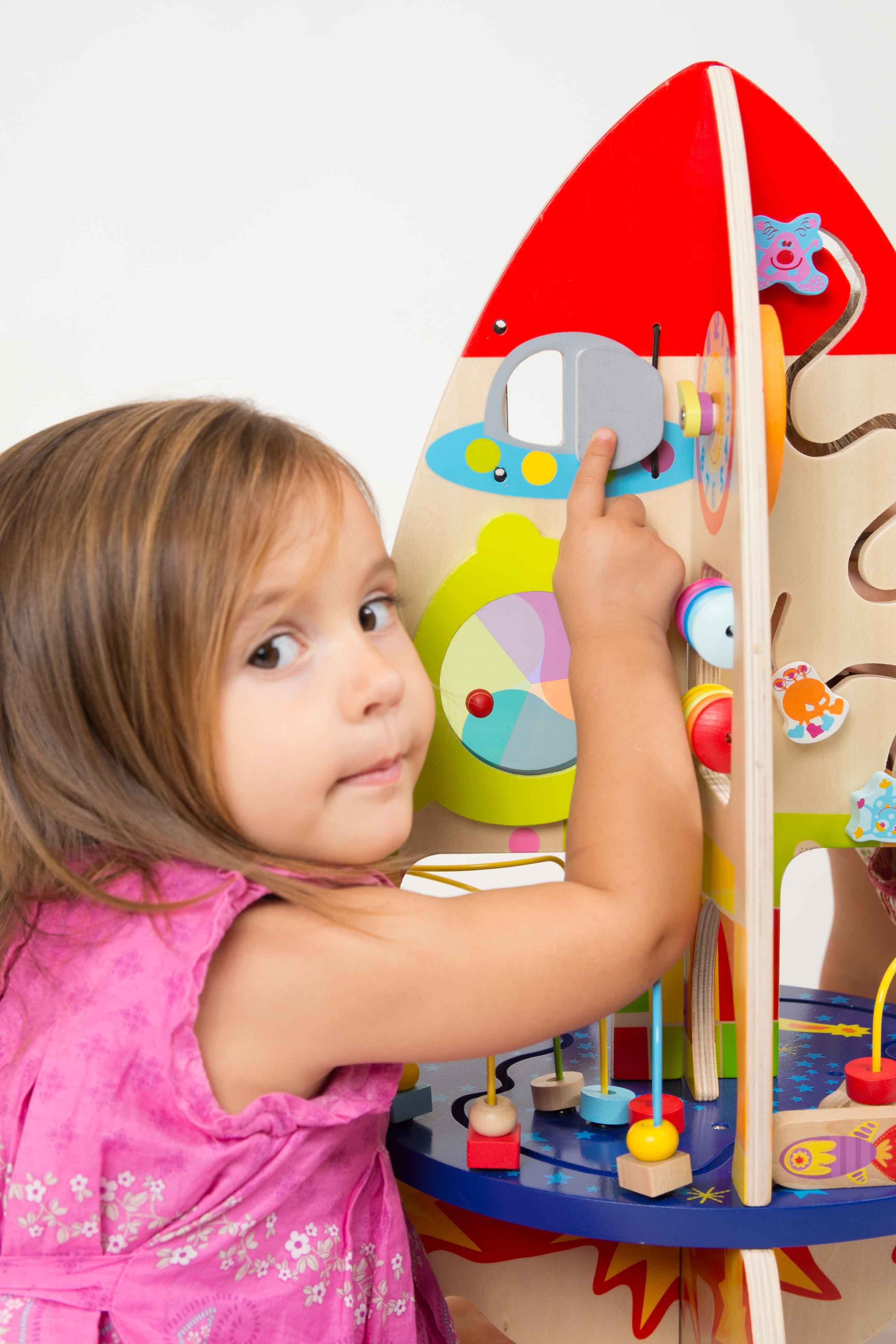 The Wood Multi Activity Rocket Includes A Bead Coaster, Gear Game, Clock, Beads And A Little Baby Safe Mirror. The Colorful Rocket Is In Shades Of Red, Blue, And Yellow. It'S Multiple Games In One Toy. Children Get Familiar With Their Abilities Through Their Own Practice And Learn How To Use Different Tools. Once Your Little One Can Sit Unaided They Also Usually Have An Interest In Grabbing And Playing With Toys And Have Some Level Of Coordination. Classic Toy'S Product Is Quality Constructed, Hand Crafted Items, With Natural Wood And Original Design. What A Great Addition To Your Child'S Bedroom, Playroom Or Nursery. Recommended For Ages 18 Months And Up.