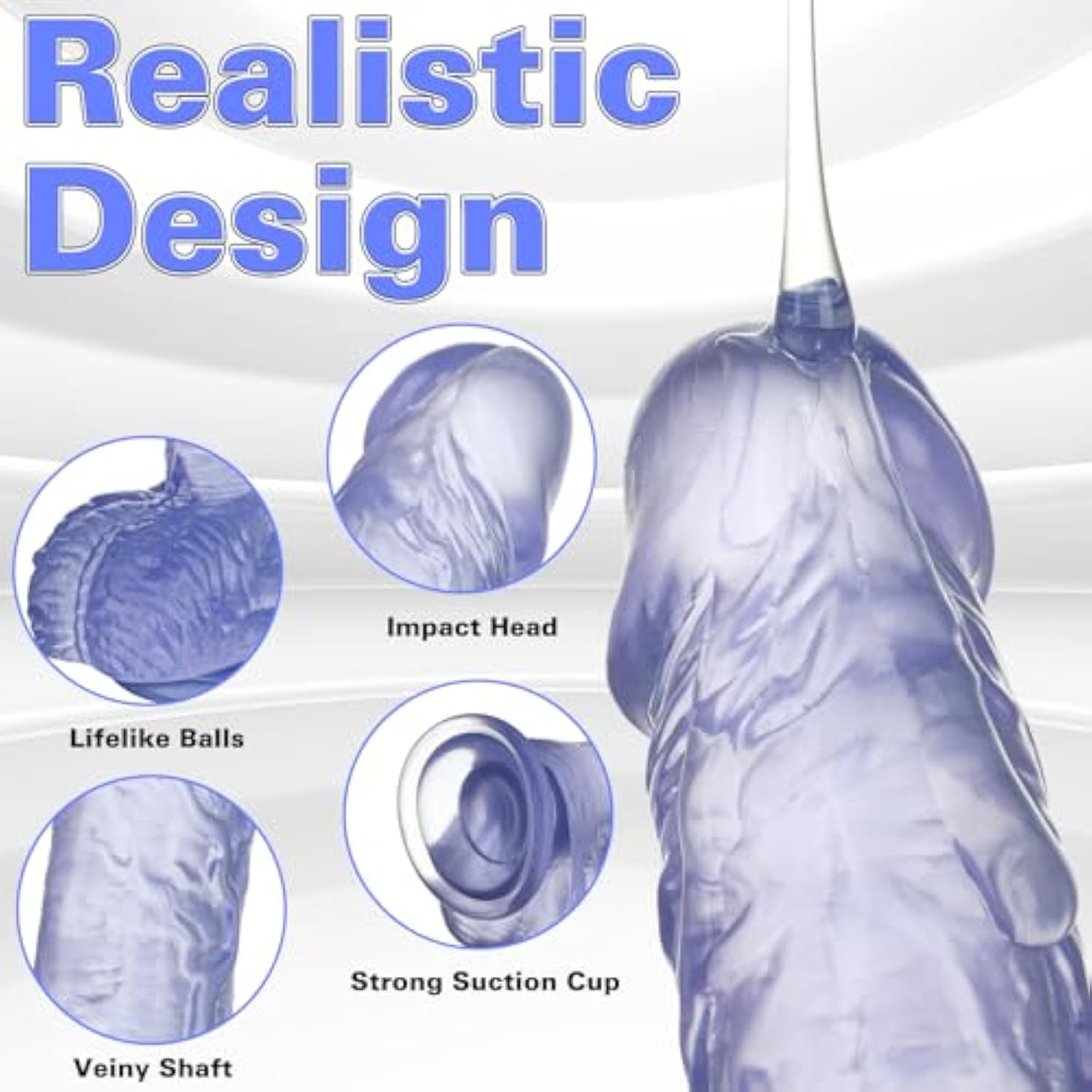 Clear Purple Realistic Dildo, 7.3 Inch Feels Like Skin Body-Safe Material, With Strong Suction Cup For Hands-Free Play, Adult Sex Toys Suitable For Women Men Gay ? Couple