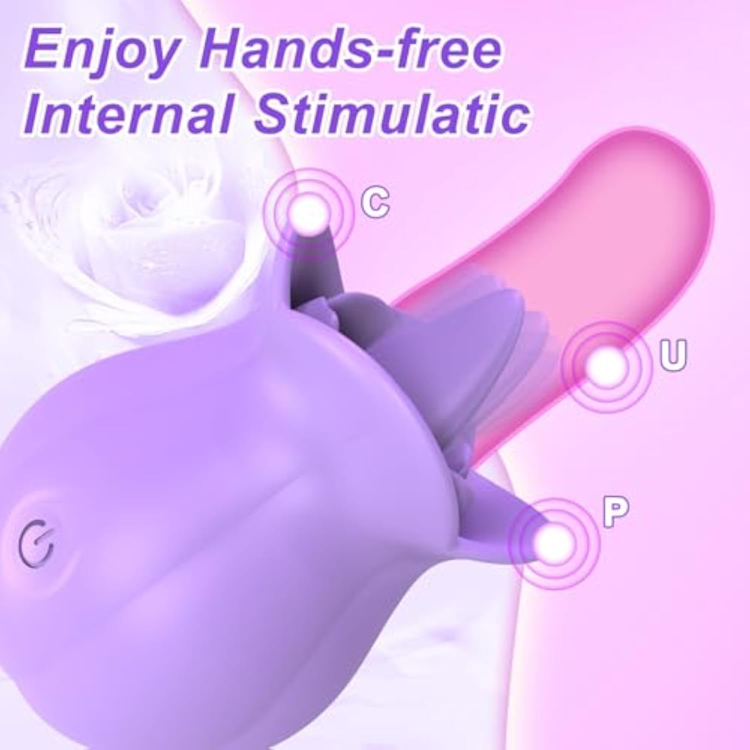 Clitoral Licking Tongue Rose Sex Toy Vibrator Stimulator For Women, Vibrating Rose Adult Women Couples Sex Toys With 10 Modes, Female Mini Clitoris Nipple Vibrator For Woman Her Pleasure (Purple Rose)