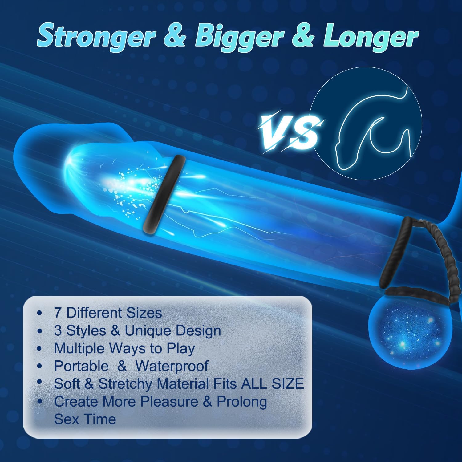 Cock Ring Set for Men – 7 Sizes for Erection Enhancement & Couples Pleasure