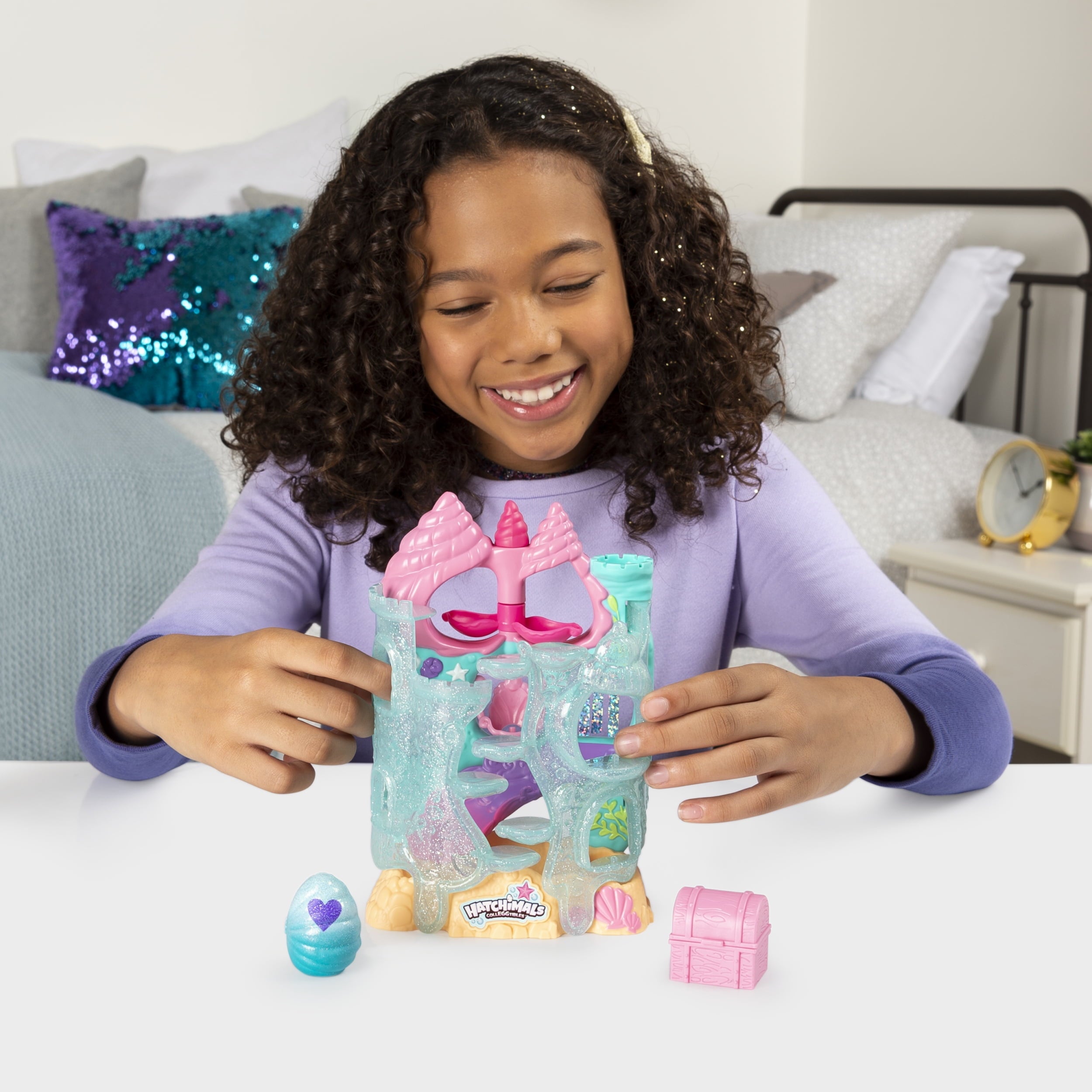 Inside The Coral Castle Is A Magical Underwater World, Full Of Dazzle! Unfold Your Playset And Discover All The Wonders Hidden At The Bottom Of The Hatchtopian Sea! With Over 25 Places To Explore, Your Can Twirl On The Seashell Spinner, Catch The Views On The Sparkly Perch Or Spin In The Swivelling Glitter Seashell! If It So Please Your , Use The Royal Swing To Crown A Queen Or King Of The Coral Castle! With The King Or Queen On The Royal Swing, Your Can Take Turns On The Slide. Swim Your Friends Through The Glitter Shower, Then Woosh Them Down The Purple-Pink Wave, Straight Into The Mermal Pool! Fill The Pool With Warm Water And See How Your Season 5 Change Color! With Two Exclusive Characters Included In This Set, You Can Hatch A Seashell-Shaped Egg And Go Exploring With Your New Friends! (You May Even Find Hidden Treasure! Open Up The Pink Treasure Chest To See!) After Your Are Finished Exploring, Simply Close The Sparkly Blue Gates And Easily Pack Your Playset Away! Open Up A World Of Underwater Fun With The Coral Castle Playset!