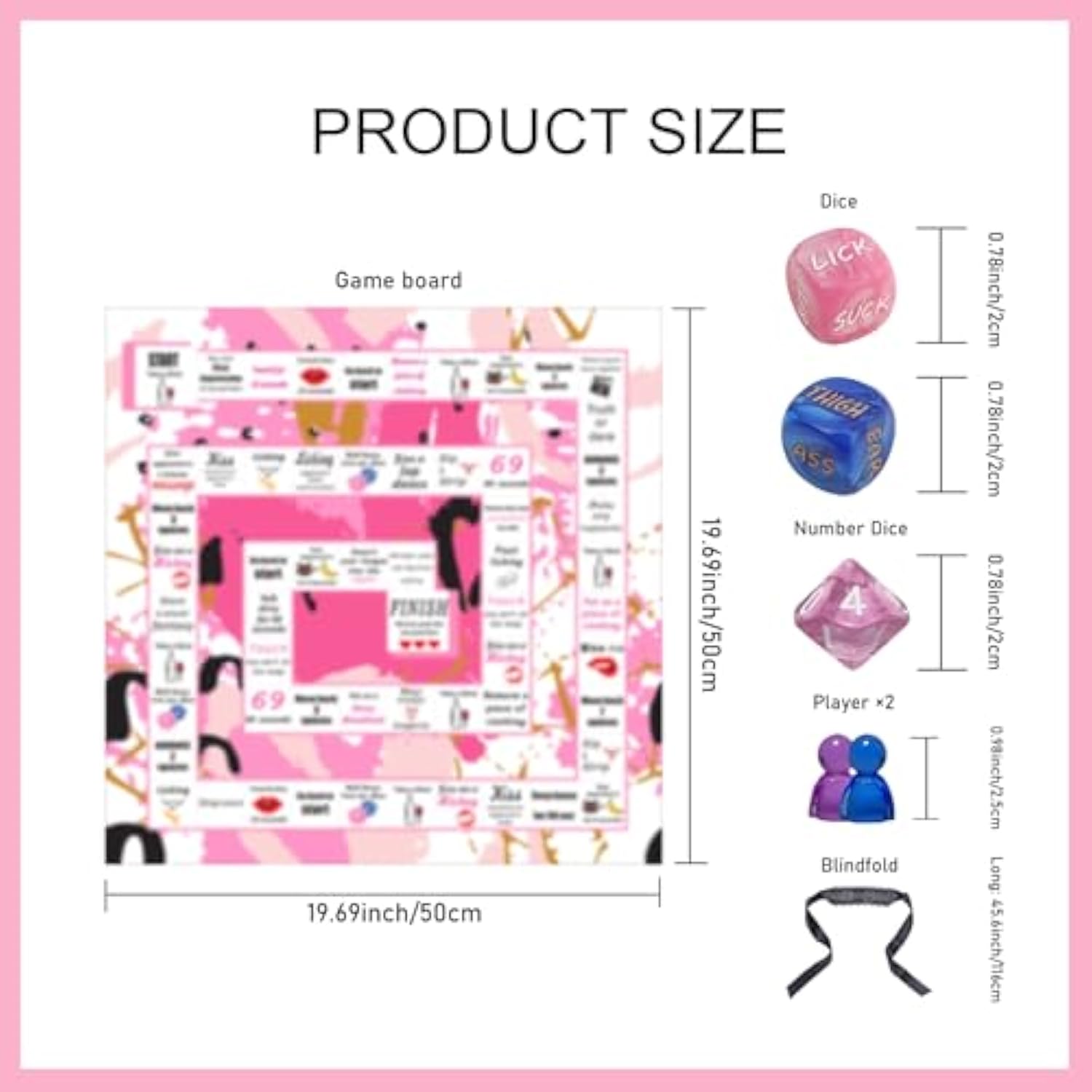 Romantic Date Night Ideas: Do You Often Have Trouble Deciding What To Do With Your Partner On Your Date Nightwear The Lace Blindfold And Roll This Date Night Sex Dice And Let It Solve Your Troubles!It Is A Fun Couple Board Games For Adults,Sex Game For Date Night, Nice Sex Board Game For 2 Playersfor Memorable Date Night Ideas.Make Every Date Night Unforgettable With This Exciting Game, Designed To Bring Couples Closer! | | Diy Gameplay With Lace Blindfold And Dice: The Romantic Couple Sex Game Offers A Variety Of Ways To Play,With Lace Blindfold And Different Date Night Sex Dice, Will Make You More Exciting.The Normal Play Is To Rotate The Number Dice, Move To The Corresponding Position And Complete The Task.You Also Can Diy More Novel Gameplay,The Sex Board Game For 2 Players Will Make You More Fun In The Game By Wearing Blindfold, Rotating The Dice, And Completing The Instructions. | | Romantic Present For Couples: The Nice Romantic Present For Valentine'S Day, Anniversaries,Birthdays, Funny Valentines Day Presents For Boyfriend Girlfriend Husband Wife, Wedding Presents For Couple, Ideal For Anniversaries And Special Occasions,Helping Couples Reignite Passion And Add Fun To Their Love Life,Making Your Life Romantic.When You Don'T Know What To Pick For Your Anniversary Present You Can Choose This Couple Board Game! | | Strengthen Relationship: Whether It’S Playful Dares Or Deep Conversations, This Romantic Sex Board Game And Good Sex Date Night Idea Encourages Couples To Connect On A Deeper Level, Enhance Intimacy And Connection Strengthening Their Emotional And Physical Bond. | | Portable Couple Games: With Its Compact Design, This Romantic Couple Board Game Is Easy To Take With You, Whether At Home Or On A Romantic Getaway, This Date Night Game Is A Nice Companion For Quality Time Together!Transform Any Moment Into A Memorable Experience With This Adultopoly Board Game! | |
