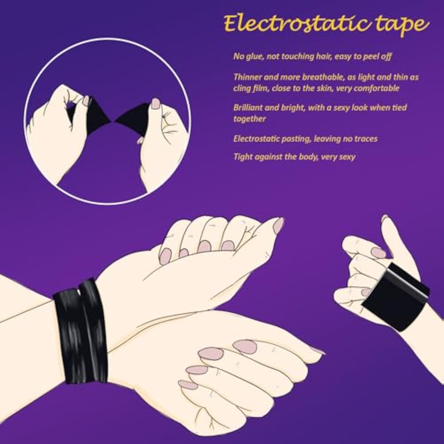 | Enjoy Fun Restraint Play: Unleash Your Imagination And Explore Your Deepest Desires With This Binding Tape! Restrain Your Slave And Indulge In Intimate Encounters That Will Make Your Greatest Sexual Fantasies A Reality With This Restraint Bondage Tape. | | Sticks To Itself For Safe Pleasure: The Pvc Bondage Tape Has No Glue And Only Sticks To Itself, Not Your Skin Or Your Clothes, So It Does Not Leave Behind A Sticky Residue, Hurt The Skin, Or Pull Your Subject’S Hair. | | Easy To Use: The Sex Tape Restraint Is Flexible And Has Endless Creative Potential That Will Challenge Your Imagination. Whether You Are Looking To Restrain Your Partner Or Get Yourself Wrapped, This Reusable Tape Is Sure To Spice Things Up And Pleasure You Both! | | High Quality Material: The Bondage Tape Is Crafted From Pvc Plastic, A Stretchy Material That Is As Gentle As It Is Durable And Flexible, Making The Tape Easy To Handle And Playful. The Bondage Tape Offers A Secure Connection And A Sensation Of Bondage Without Adhering To The Skin Or Hair. | | Versatile Bondage Tool: The Simplest Yet Versatile Addition To Your Bondage Kit! Comes In Bold Vibrant Colors That Will Add A Touch Of Color And Excitement To Your Intimate Exploration. Use The Bdsm Bed Restraint To Blindfold The Eyes, Bind Hands, Seal The Mouth, Or Restrain The Feet For Heightened Control And Exploration. | |