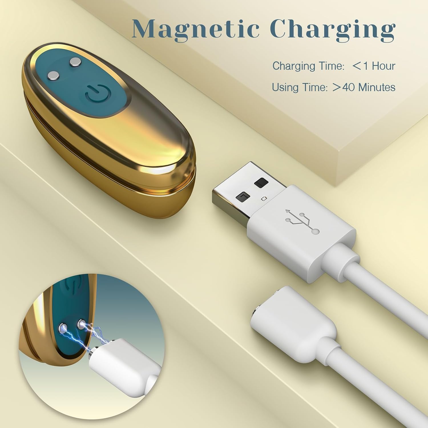 The included magnetic USB charger powers both the bullet and remote, providing over 40 minutes of continuous use on a full charge. No batteries required—just charge and enjoy.