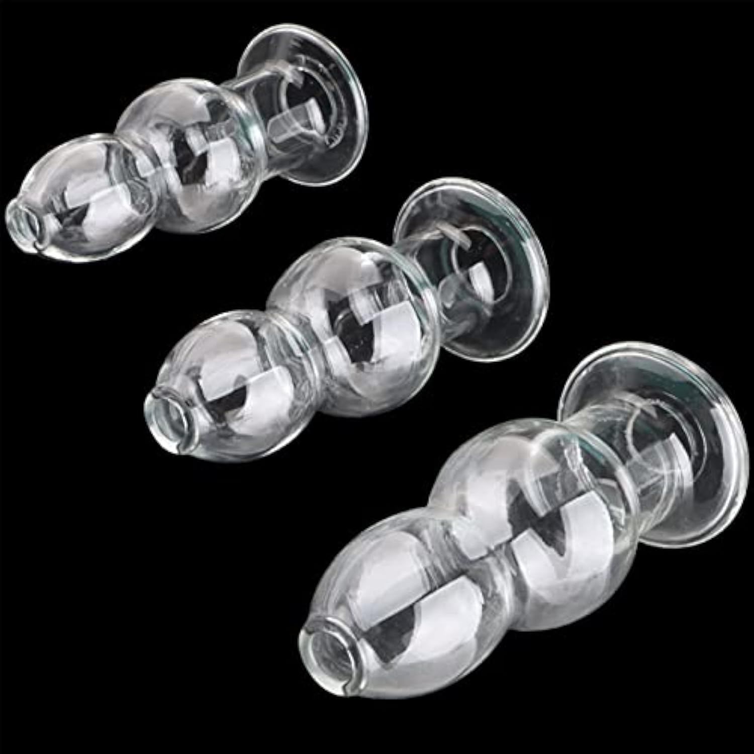 Crystal Calabash Shape Transparent Anal Plug Peephole Clear Hollow Glass Butt Plug Sex Toy(L)