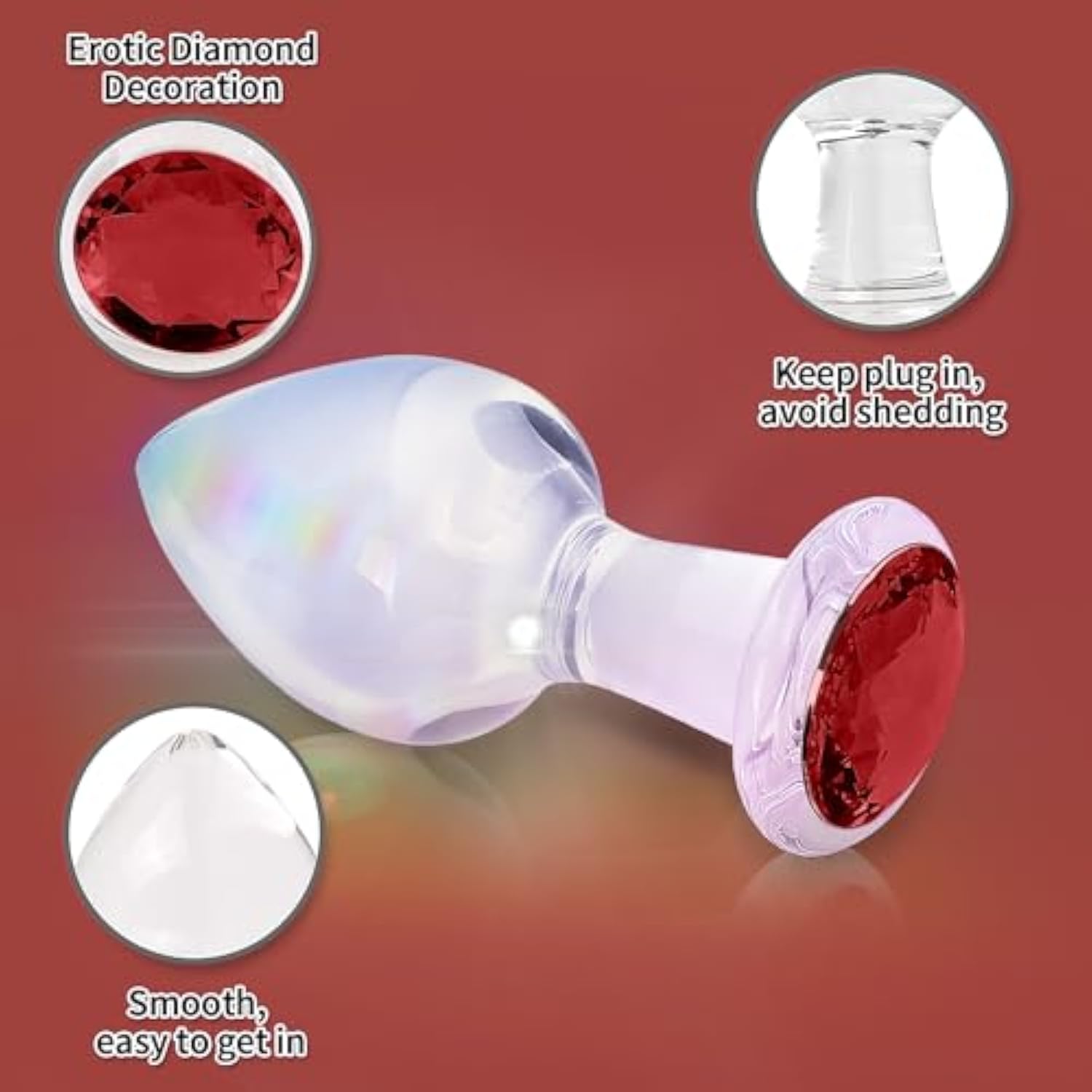 Crystal Glass Anal Plug With Luxury Jewelry Butt Plug Fetish Anus Stimulation Unisex Adult Anal Sex Toy (Red, L)