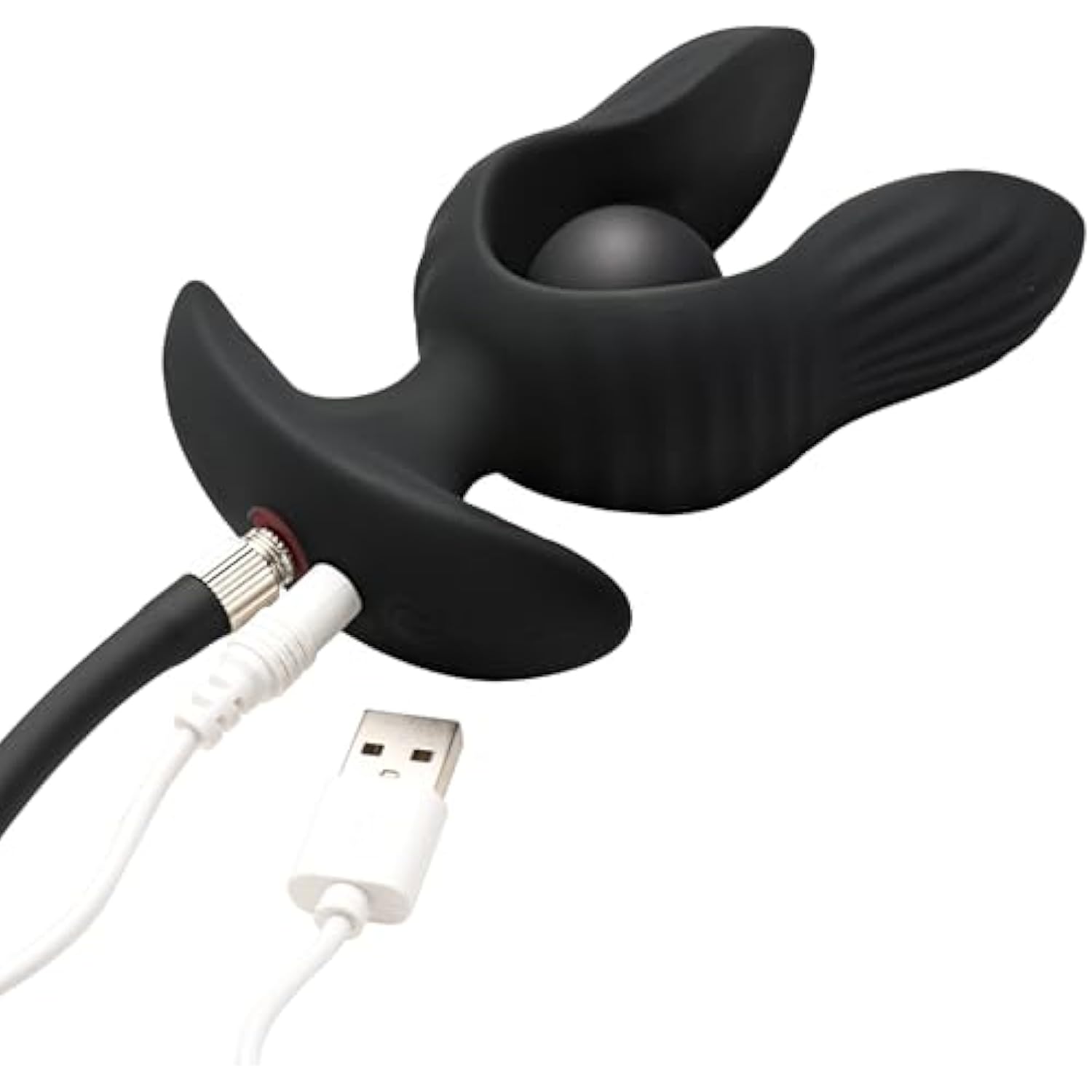 Dark Pearl Inflatable Vibrating Butt Plug For Beginners, Men, Women, & Couples. Dual Motors And Premium Silicone. Slow Release Valve And Removable Hose. 2 Pieces, Black.