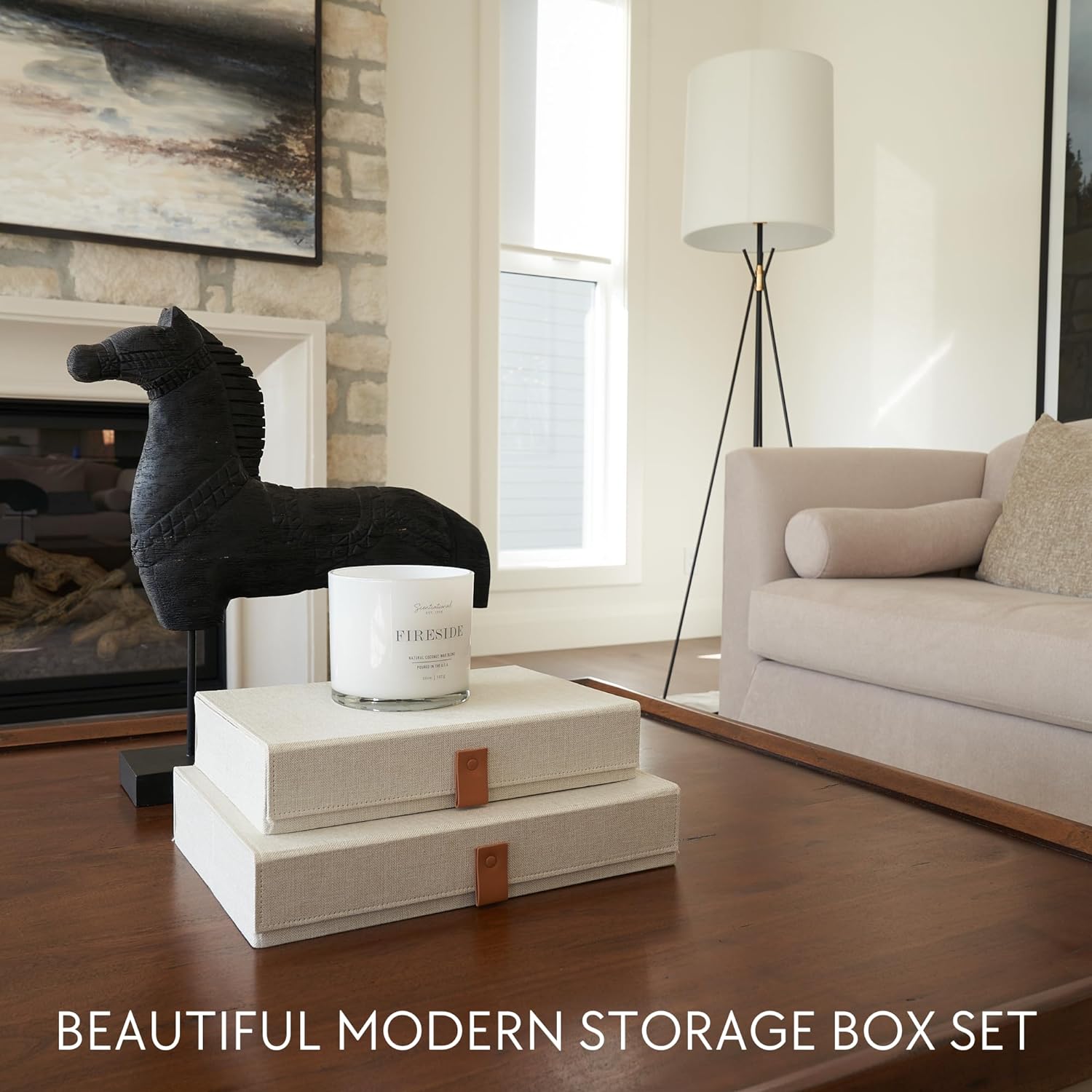 Decorative Photo Storage Boxes with Lids - Set of 2 Beautiful Linen Organizers Are Perfect to Safely Store Your Pictures, Documents, Scrapbooking Supplies, Keepsakes and Other Memories in Style