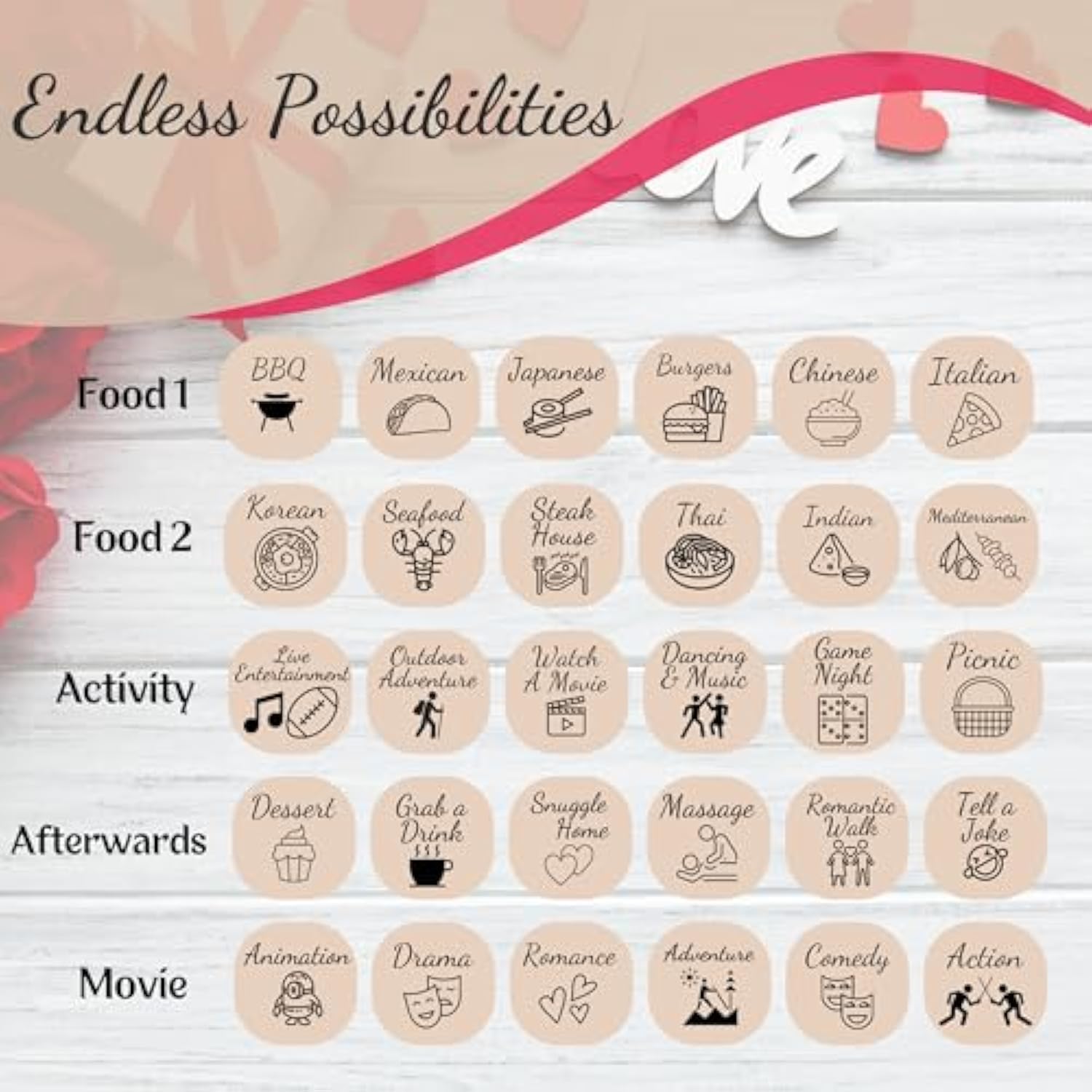 Deluxe Date Night Dice Game - Fun Romantic Couples Gift - 5 Dice, Decision Coin, Board & Carry Bag For Bachelorette, Anniversary, Wedding, Bridal Shower - Girlfriend Wife Husband Him Her Anniversaries