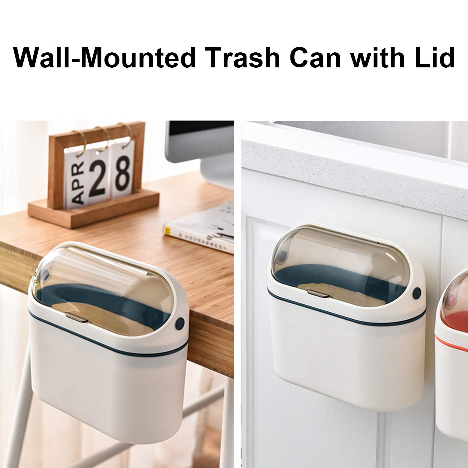 Desktop Trash Can with Lid, Mini Trash Can for Desk, Small Office Countertop Garbage Can, Mountable Tiny Wastebasket for RV, Dorm, Freezer, Laundry and More (Blue)
