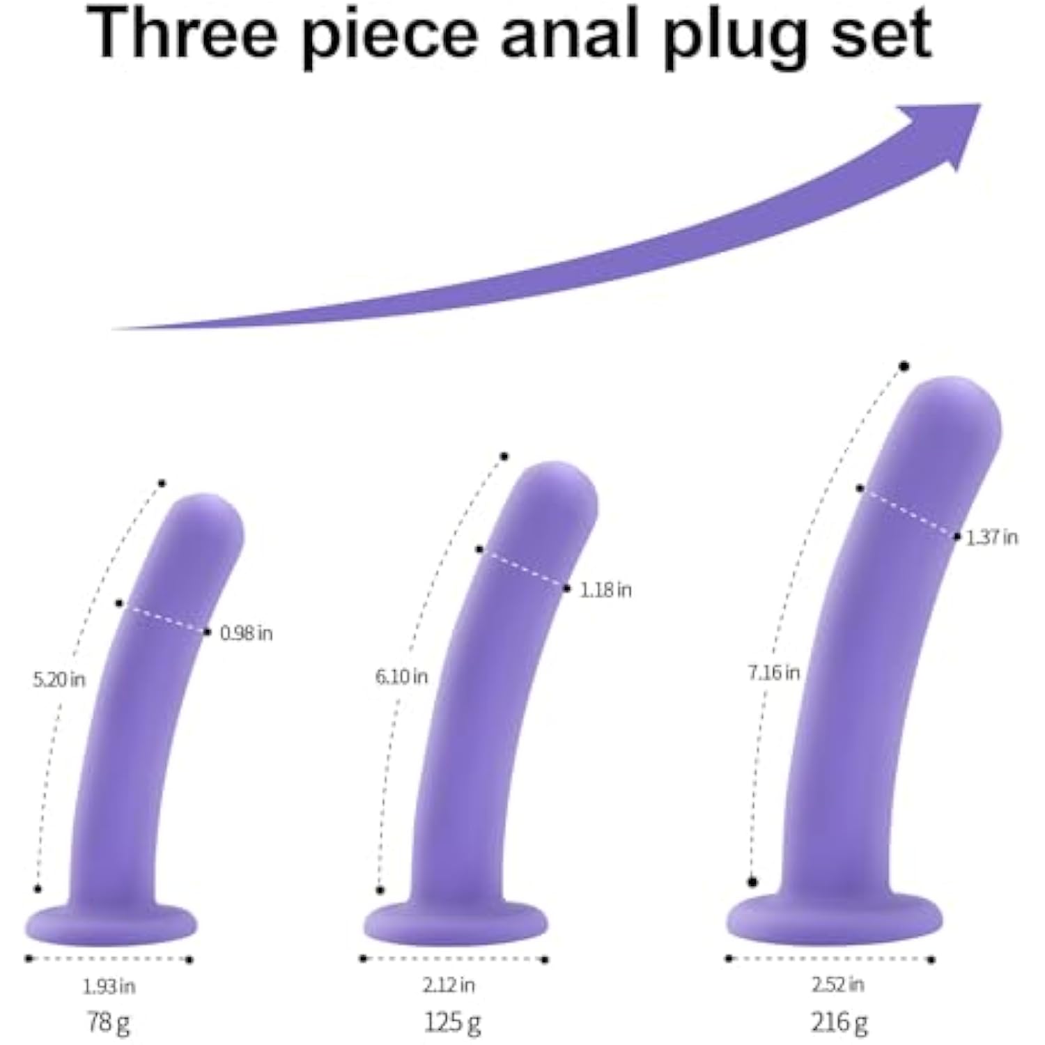 Dildo Anal Plug Trainer Kit, 3 Sizes Butt Plugs Training Silicone Dildo With Strong Suction Cup Anal Toys Prostate Vaginal G Spot Dildo Sex Toys For Men Women (Purple)