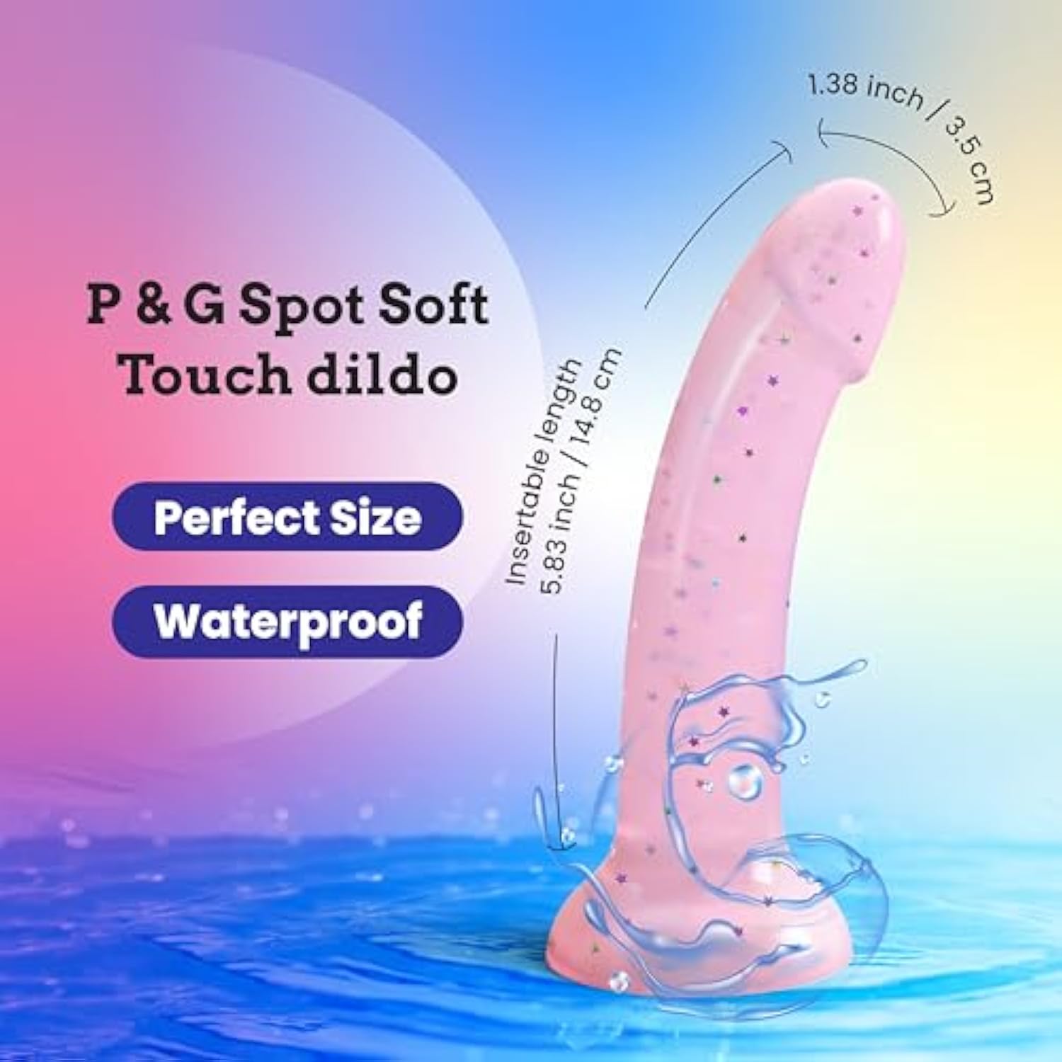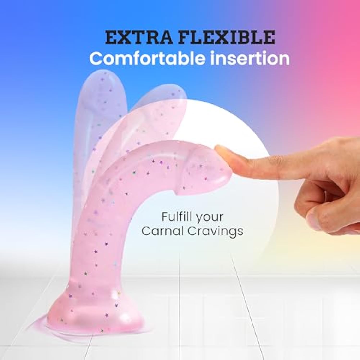 Dildolls - Flexible Dildo With Curved Style - Ultra Soft Silicone Dildo For Women Adult Sex - Smooth Penis Female Sex Toy - Women Sex Toys (Starlight)