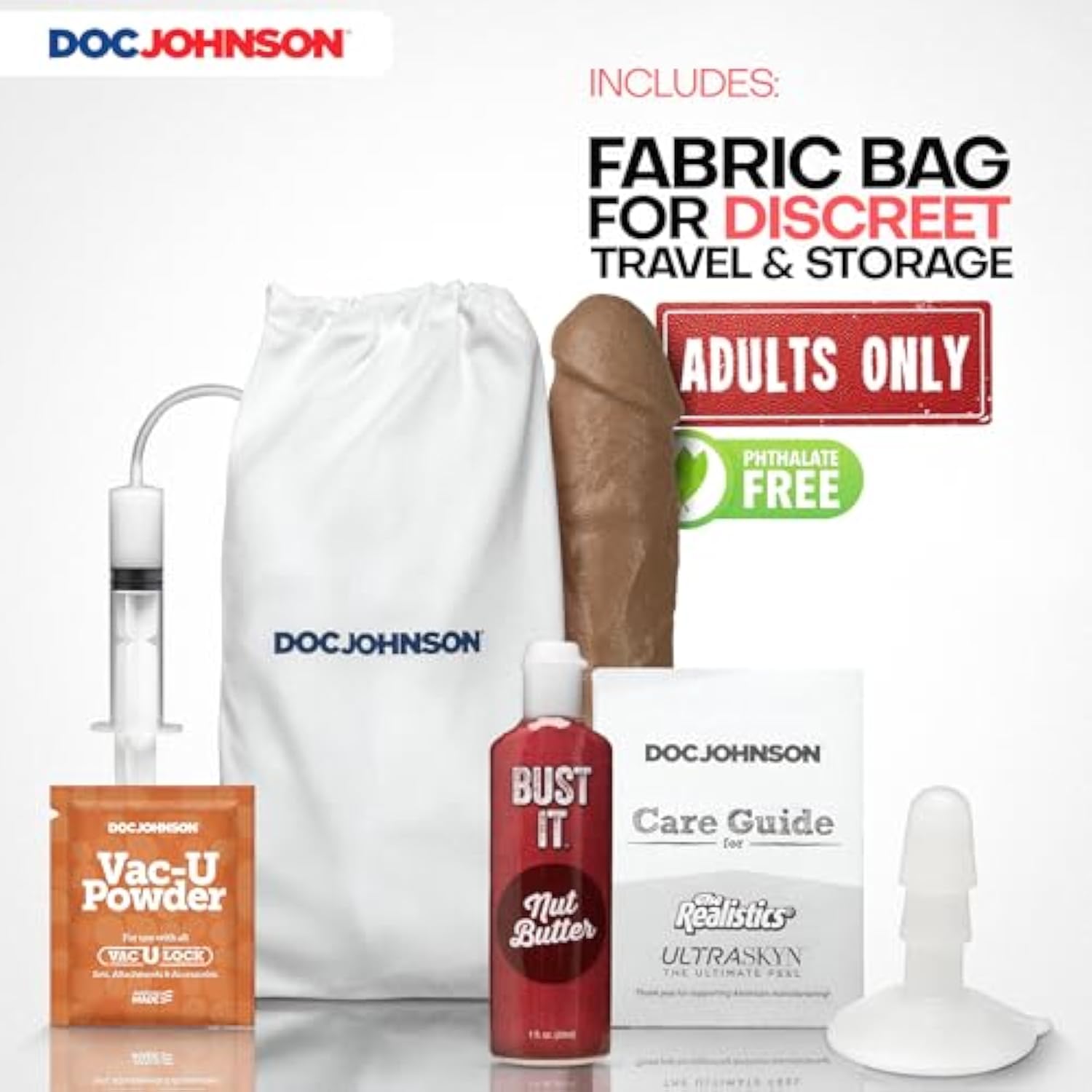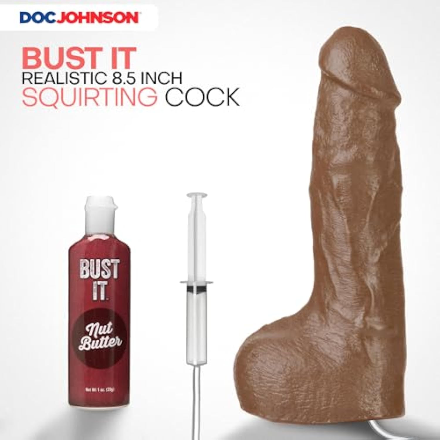 Doc Johnson Bust It - Squirting Realistic FIRMSKYN Dildo with Removable Vac-U-Lock Suction Cup - F-Machine and Harness Compatible - for Adults Only, Caramel