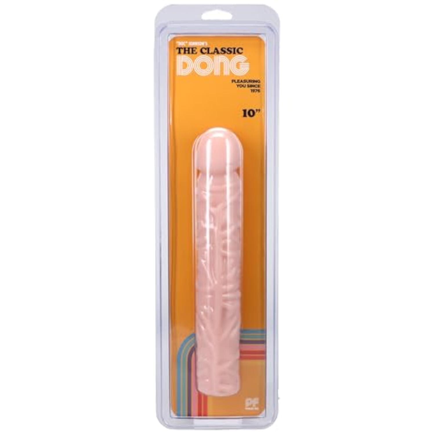 | Classic Dong Dimensions; Total Length: 9.5 in. (24.1 cm), Insertable Length: 9.5 in. (24.1 cm), Width/Diameter: 1.75 in. (4.4 cm), Circumference: 5.5 in. (14 cm) | | Bulbous Head and Textured Veins for Added Stimulation | | Firm Yet Flexible | | Suitable for Solo or Partner Play | | Phthalate-Free, Body-Safe | For Adults Only | |
