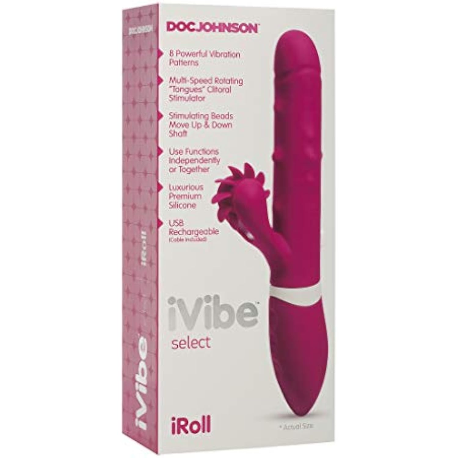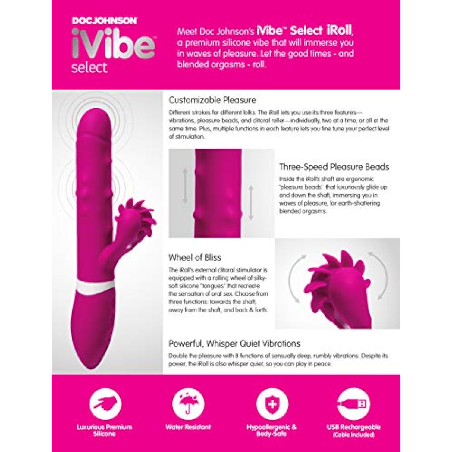 Doc Johnson iVibe Select - iRoll - Silicone Rabbit-Style Vibrator - Pleasure Beads Along Shaft Move Up-and-Down, Clit-Stimulating Wheel of Rotating Silicone "Tongues", Pink