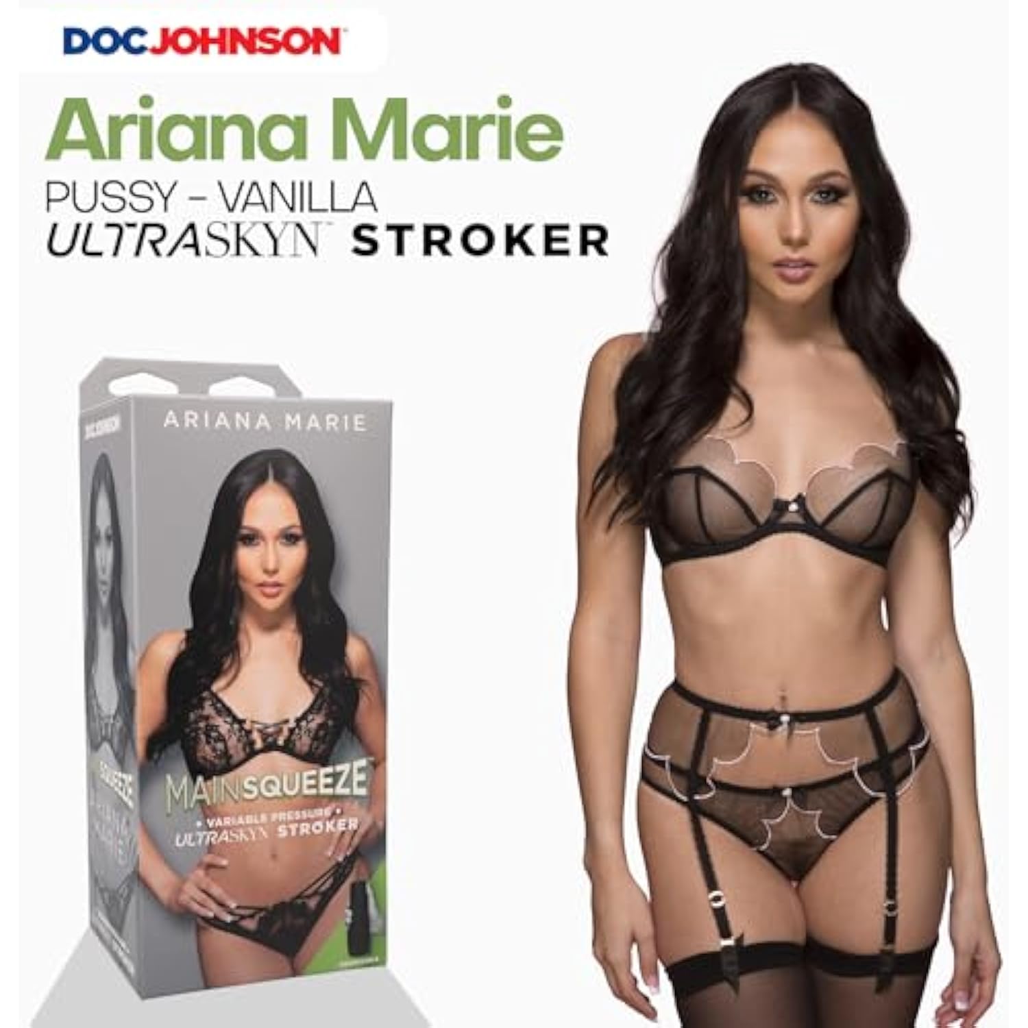 Doc Johnson Main Squeeze - Ariana Marie - Squeeze Plate for Precise Pressure - Twist End Cap to Control Suction - Discreet Premium Stroker - Male Masturbator, Vagina, Vanilla