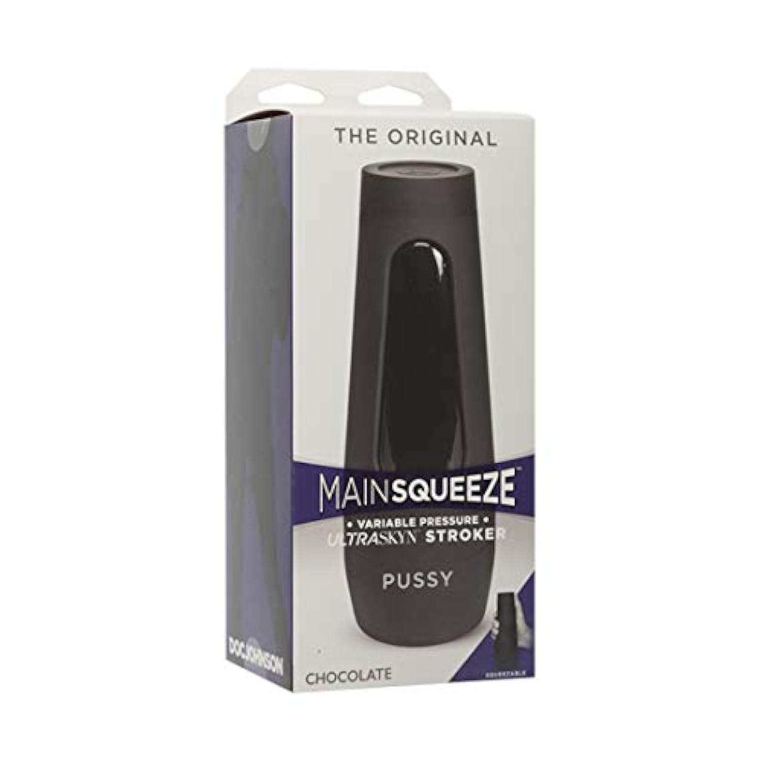 Doc Johnson Main Squeeze - The Original Pussy - Squeeze Plate for Precise Pressure - Twist End Cap to Control Suction - Discreet Premium Stroker - Male Masturbator - Chocolate