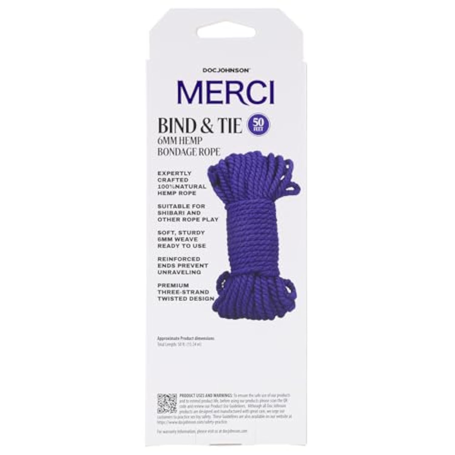 Doc Johnson Merci - Bind & Tie - 6mm Hemp Bondage Rope - 50 Feet - for Adults Only, Violet