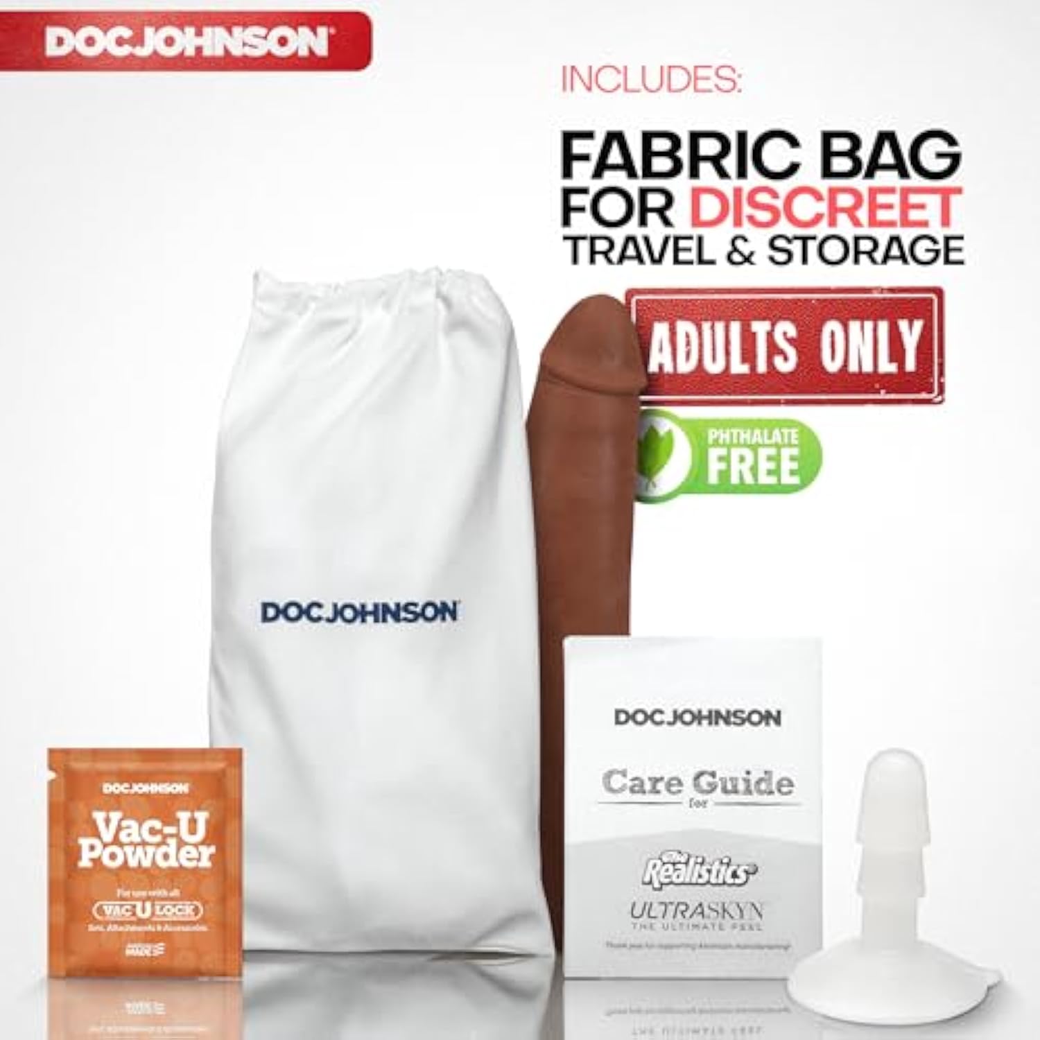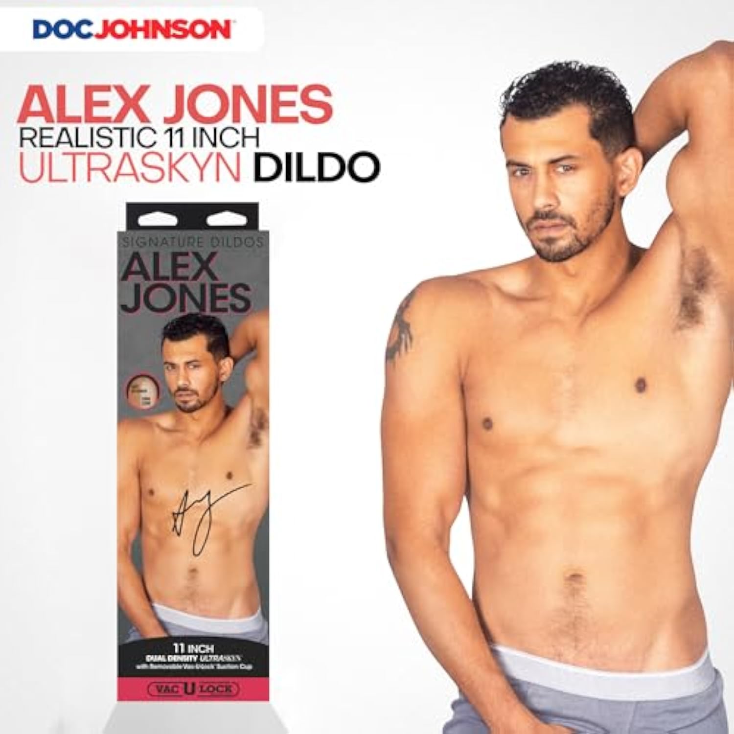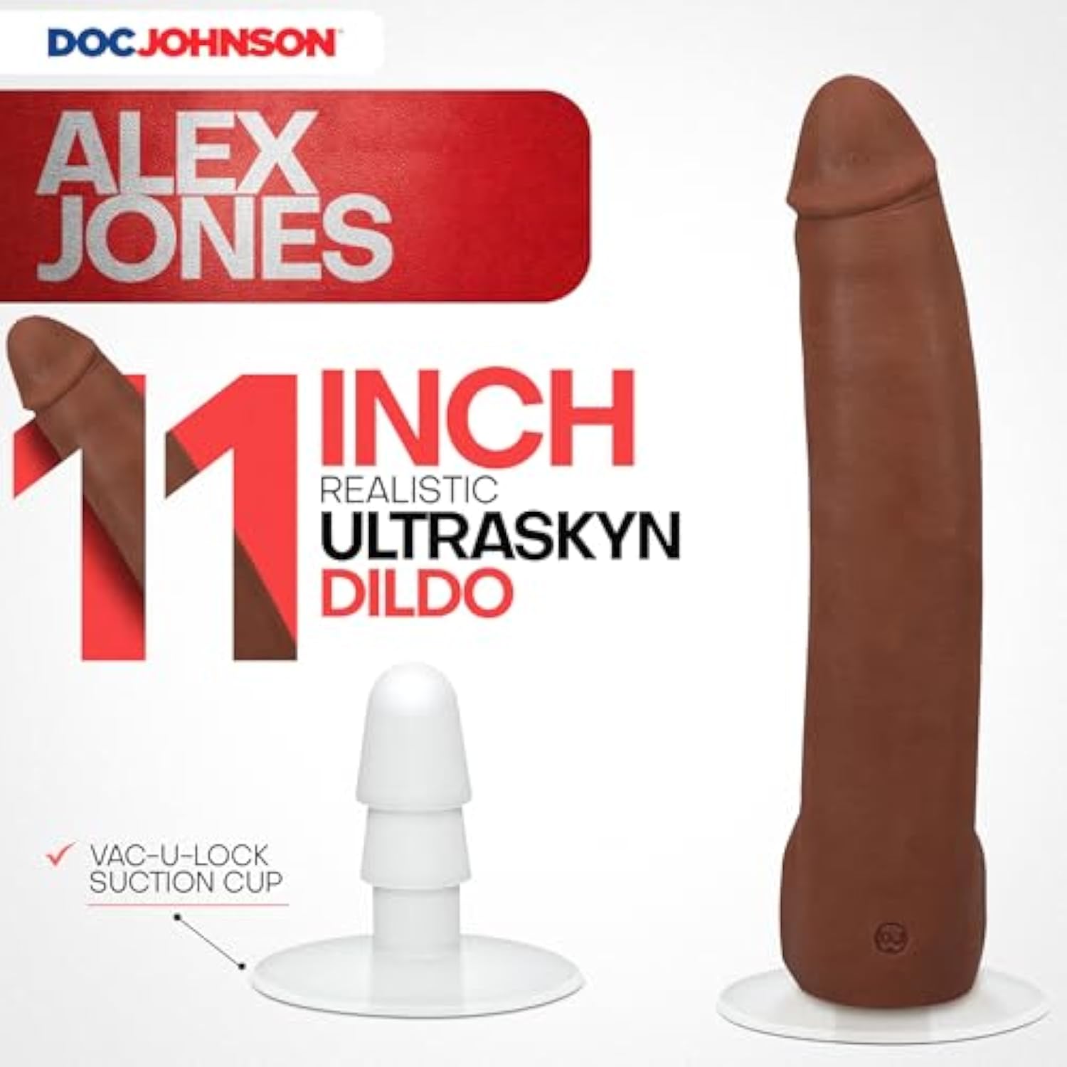 Doc Johnson Signature Series - Alex Jones - 11 Inch Realistic ULTRASKYN Dildo with Removeable Vac-U-Lock Suction Cup - F-Machine & Harness Compatible - for Adults Only, Caramel