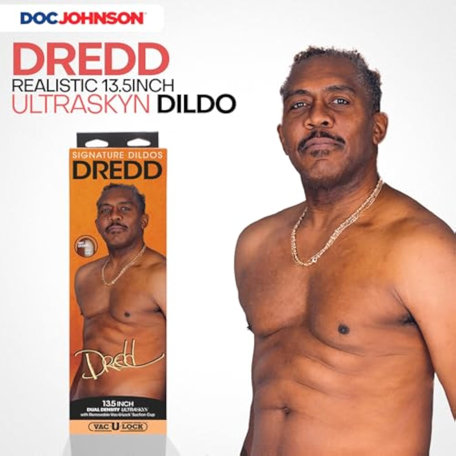 Doc Johnson Signature Series - Dredd - 13.5 Inch ULTRASKYN Dildo with Removable Vac-U-Lock Suction Cup - F-Machine & Harness Compatible - for Adults Only, Chocolate
