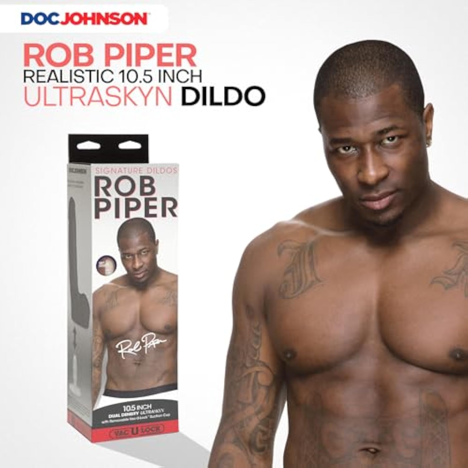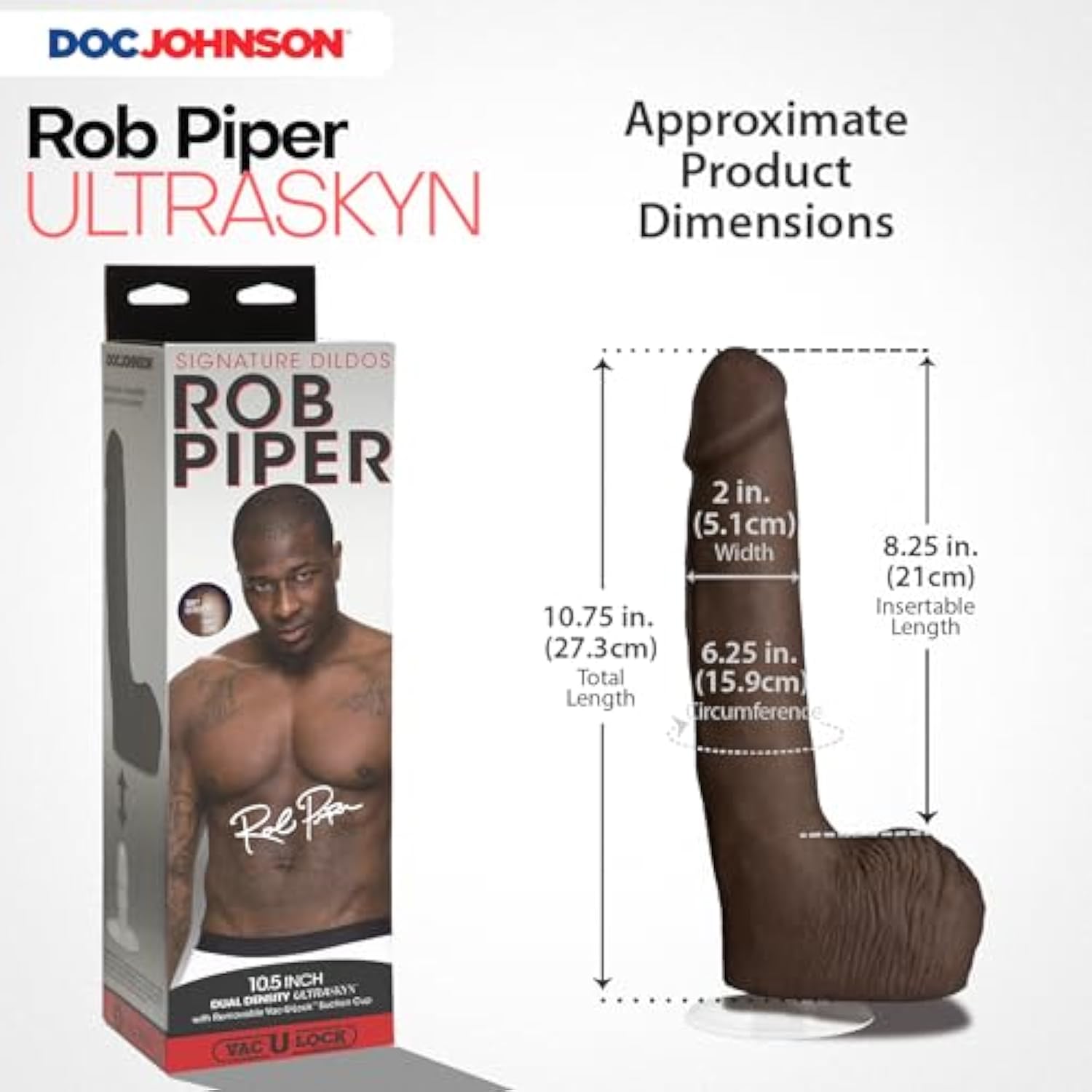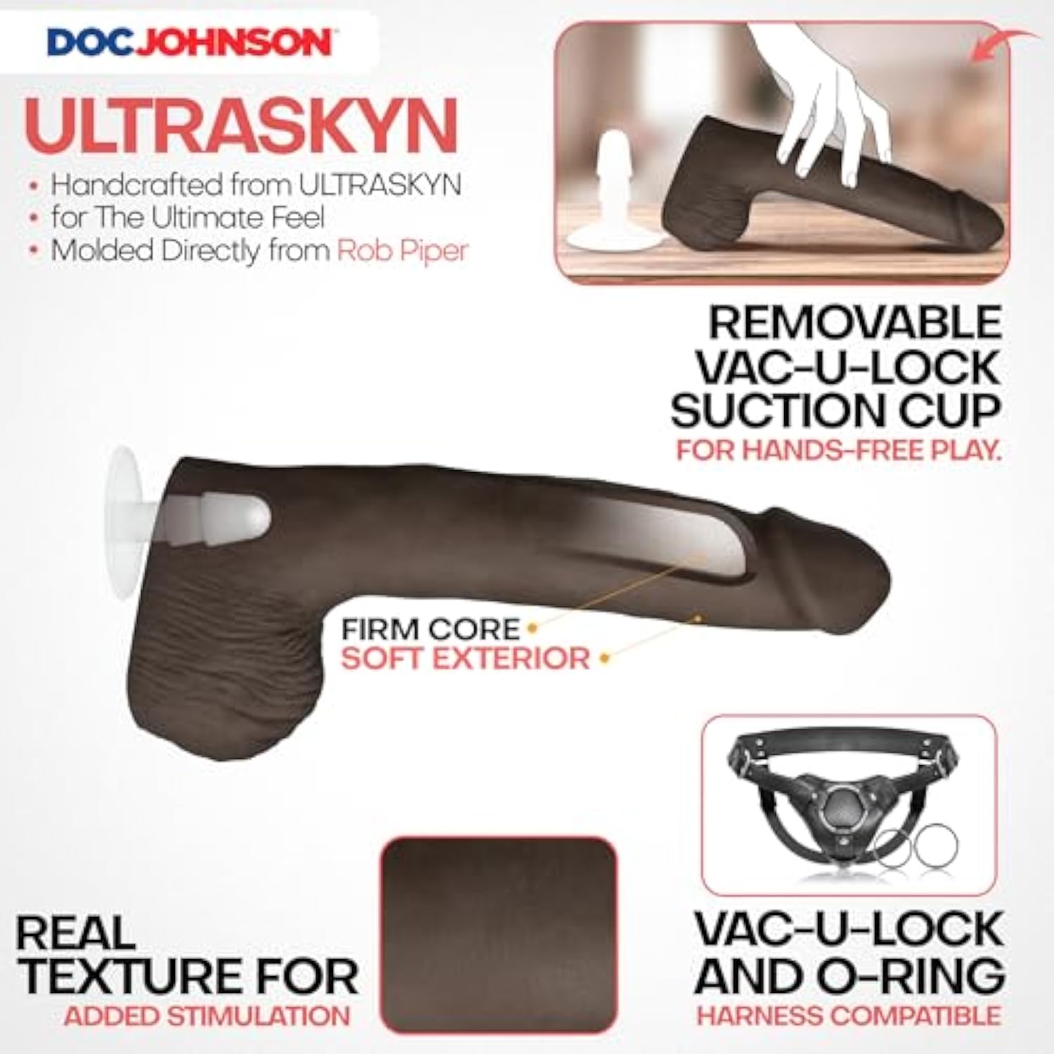 Doc Johnson Signature Series - Rob Piper - 10.5 Inch Realistic ULTRASKYN Dildo with Removable Vac-U-Lock Suction Cup - F-Machine & Harness Compatible - for Adults Only, Chocolate