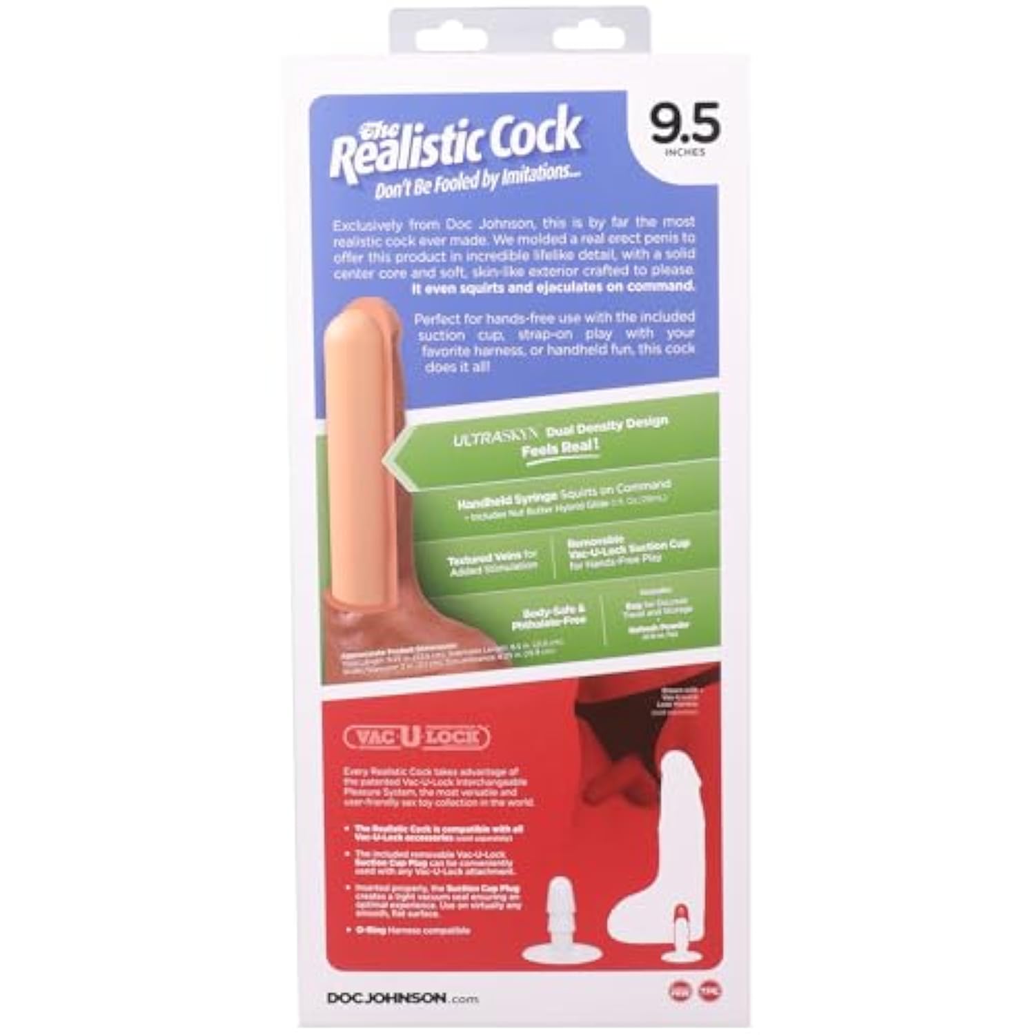 Doc Johnson The Realistic Dildo- Squirting 9.5 Inch ULTRAKSYN with Removable Vac-U-Lock Suction Cup - F-Machine and Harness Compatible - for Adults Only, Chocolate