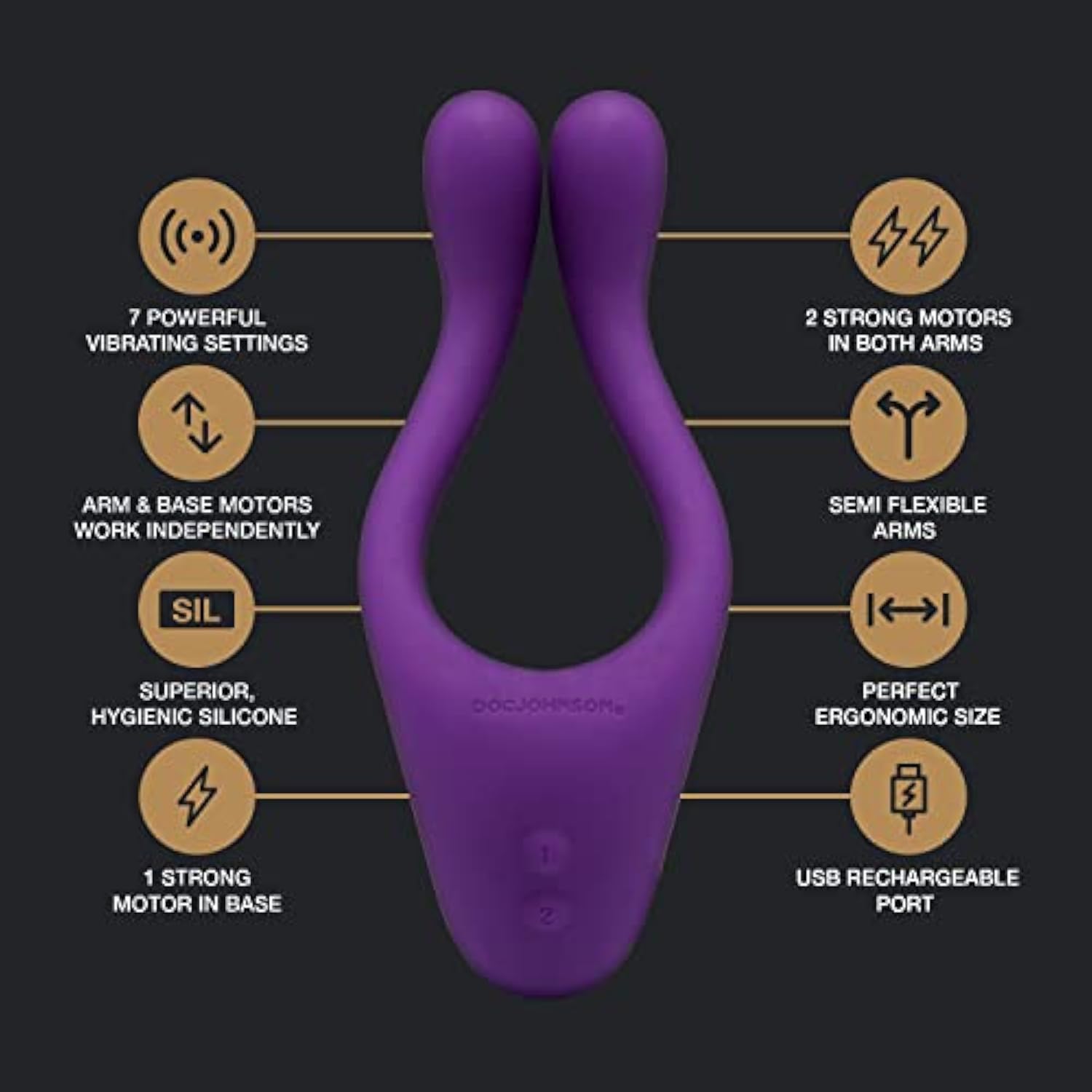 Doc Johnson TRYST - Multi Erogenous Zone Silicone Vibrator and C-Ring - Focused Stimulation For Both Partners - Synergistic Vibrations - Purple