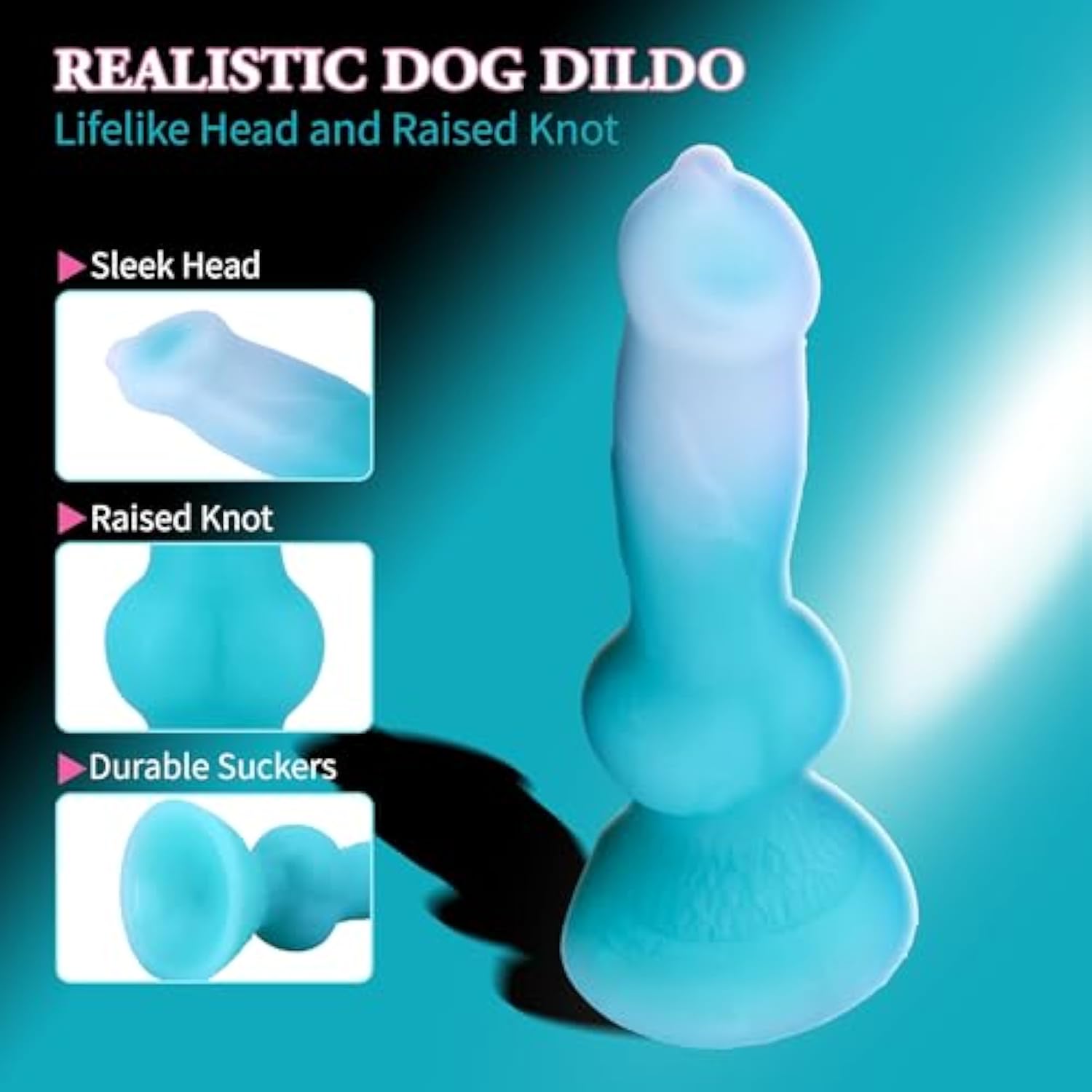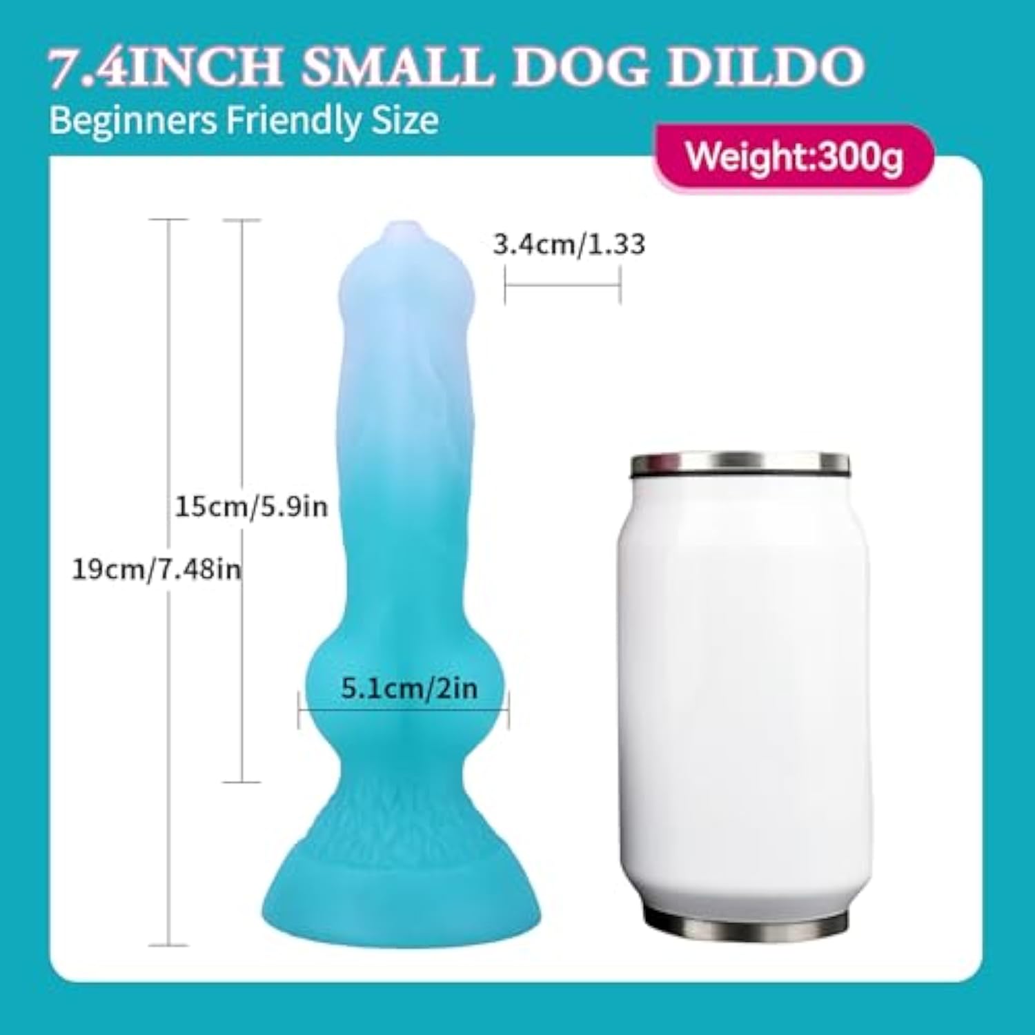 Dog Dildo Realistic Animal Penis With Suction Cup, 7.4Inch Wolf Dildos Fantasy Silicone Anal Toys For Beginners G Spot Stimulation Women Strap On(Blue)