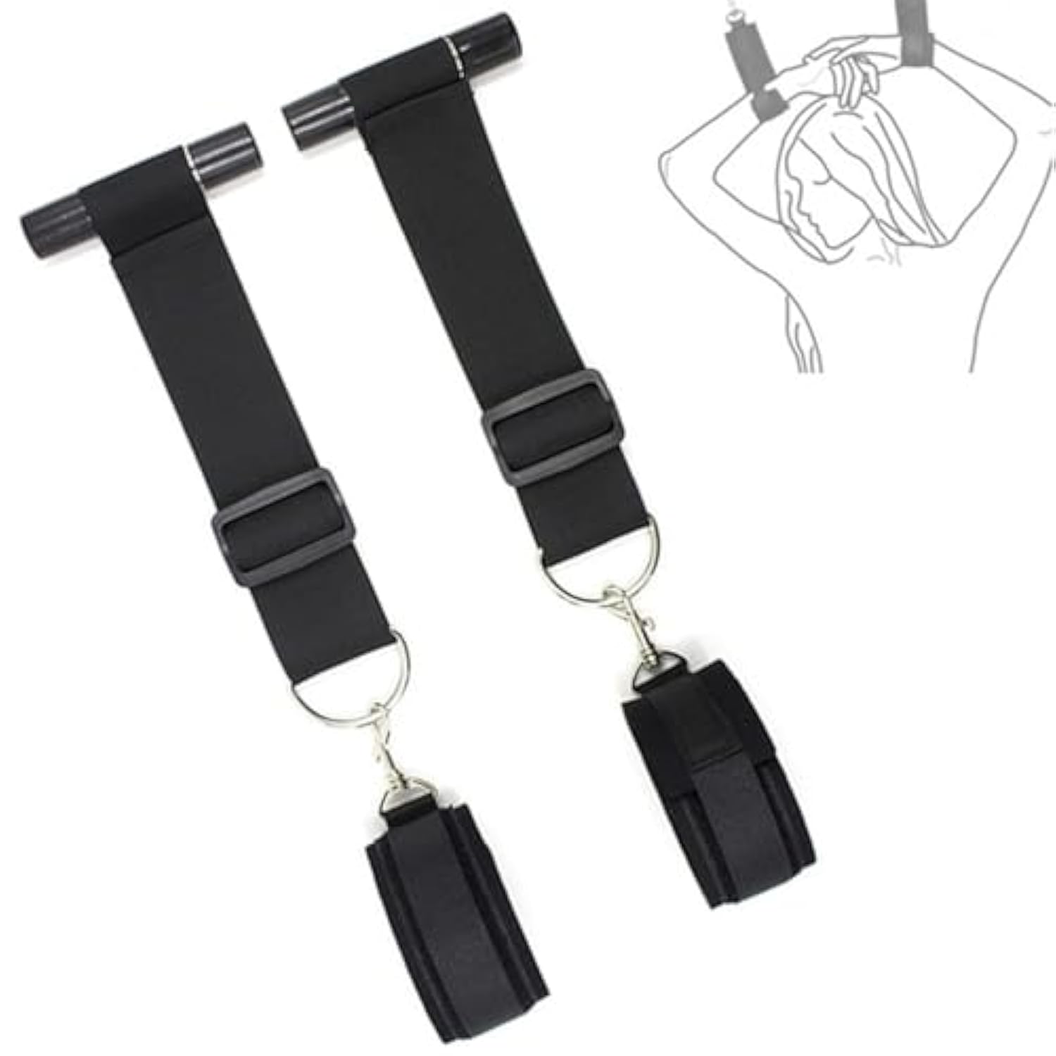 Door Sex Swing Straps Hanging Wrist Cuffs Adjustable Bondage Restraints BDSM Kit with Plush Leather Couple Handcuffs Bondage Gear Accessories for Kinky Couples (Black)