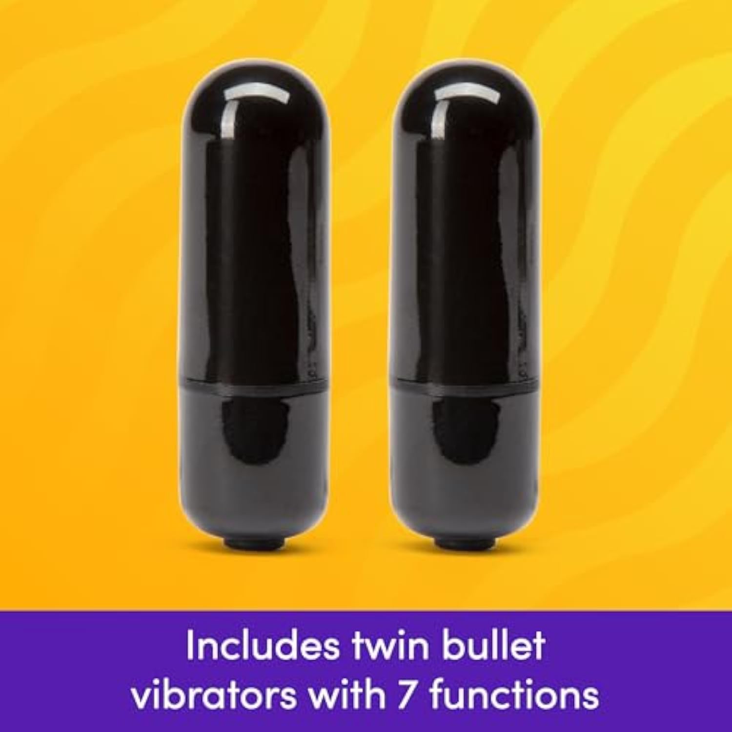 Double Fun Vibrating Rabbit Double Penetration Strap On Dildo - 6 Inch Realistic Silicone Dildo With 2 Bullet Vibrators - Waterproof - Black