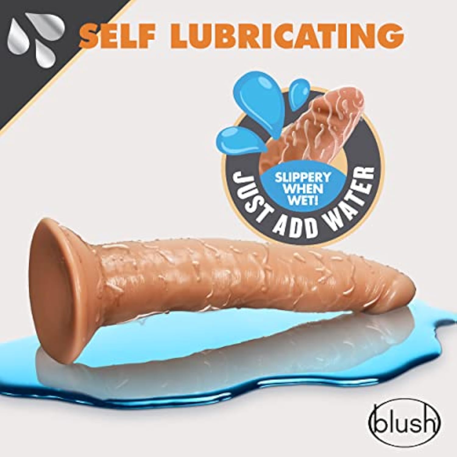 , Dr. Skin Glide, 7.5" Self Lubricating Feels Like Skin Soft Realistic Dildo, Slim 1.5" Thick, Sturdy Strap On Compatible Suction Cup For Hands Free Play, Sex Toy For Women Men, Mocha
