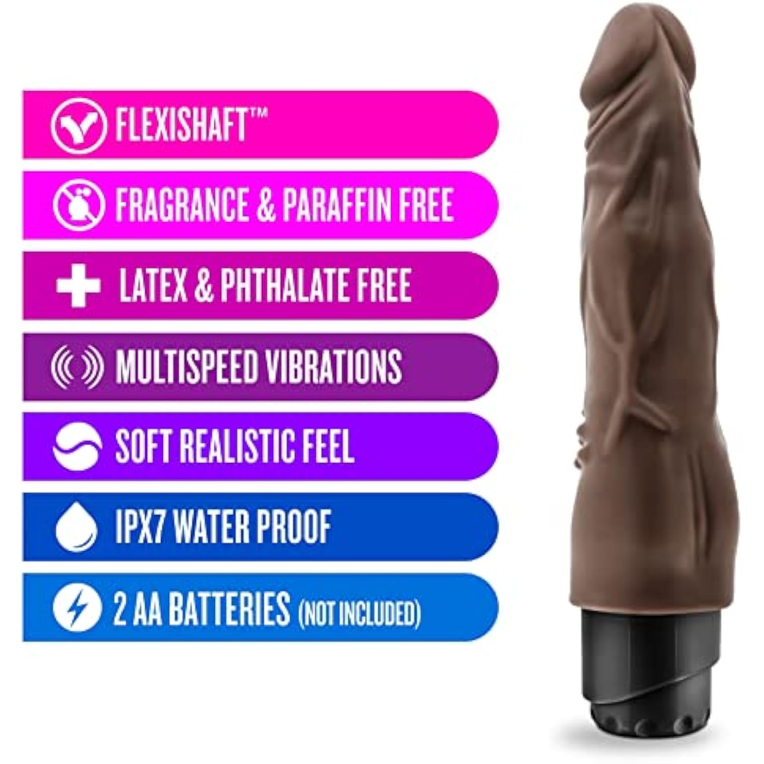 Dr Skin Vibe 4 - Real Feel 8 Inch Realistic Vibrating Dildo - 1.5 Inch Width - Ipx7 Waterproof - Soft Body Safe Material Multi Speed Bendable Vibrator - Sex Toy For Couples - Chocolate