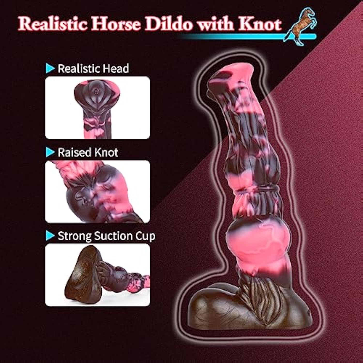- Realistic Knotted Horse Dildo - Long Horse Dildo With Realistic Head And Two Raised Knots, Lifelike Muscle Striation To Get More Stimulation When Play. Size: Length In Total 26Cm(10.2Inches), Insertable Length 23.4Cm(9.2Inches). Width Of Head 5.2Cm(2Inc