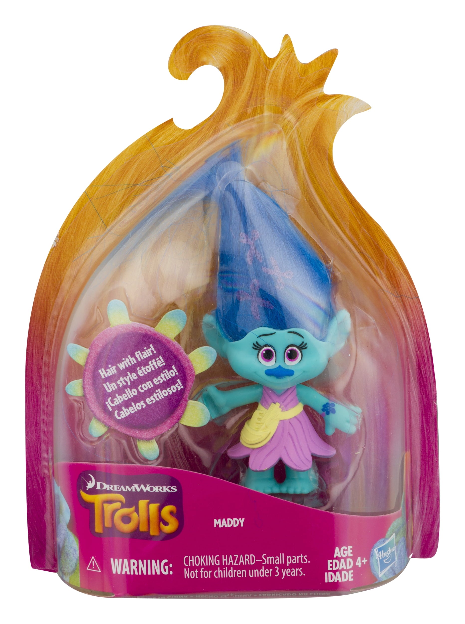 Put your hair in the air! DreamWorks Trolls Maddy isnâ€t just a hair stylist, sheâ€s a hair sculptor, working wonders with the Trolls†already magical locks! Collectible and totally fabulous, this Maddy figure sports wild, colorful hair printed with an adorable scissor design to match her love for styling. She's approximately 5-inches tall (including hair!) and ready for fun adventures around town. Collect them all! (Each sold separately.) DreamWorks Trolls Copyright 2017 DreamWorks Animation LLC. All Rights Reserved. Hasbro and all related terms are trademarks of Hasbro.