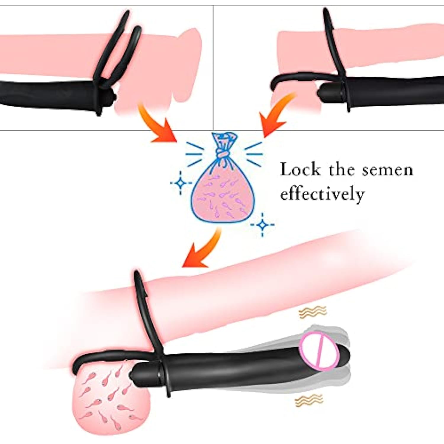Dual Penetration Vibrating Dildo With Penis Rings, Strap-On Double Penetration Anal Sex Plug, Dildo Vibrator With Cock Rings For Men Sex Enhance, Butt Plug Strapon Anal Sex Toys For Couples (Black)