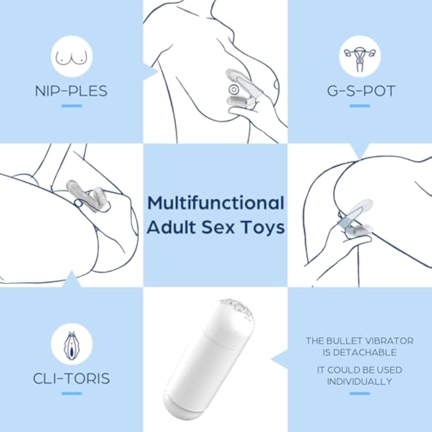 Dual-Stimulation Finger Vibrator Accessaries, Reusable Transparent Soft Stretchy Vibrators, Adult Sex Toys For Women Couples, Detachable Mini Bullet Vibrator Clitoral G-Spot Nipple Vibrators Sex Toy