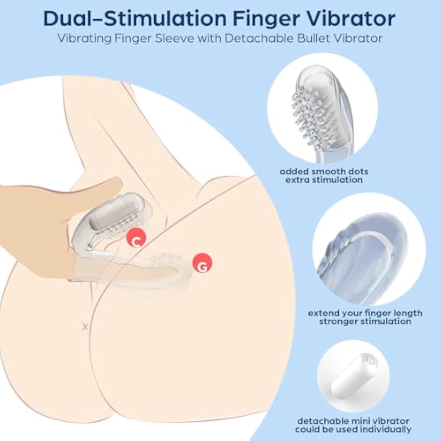 - ?2 Stimulation Points Precise Stimulation?Enjoy The Ultimate Pleasure With Our Dual Stimulation Finger Vibrator As Our Sex Toys For Women Couples Targets Both The Clitoris And G-Spot Simultaneously, Bringing You Intensifying Sensations For Mind-Blowing