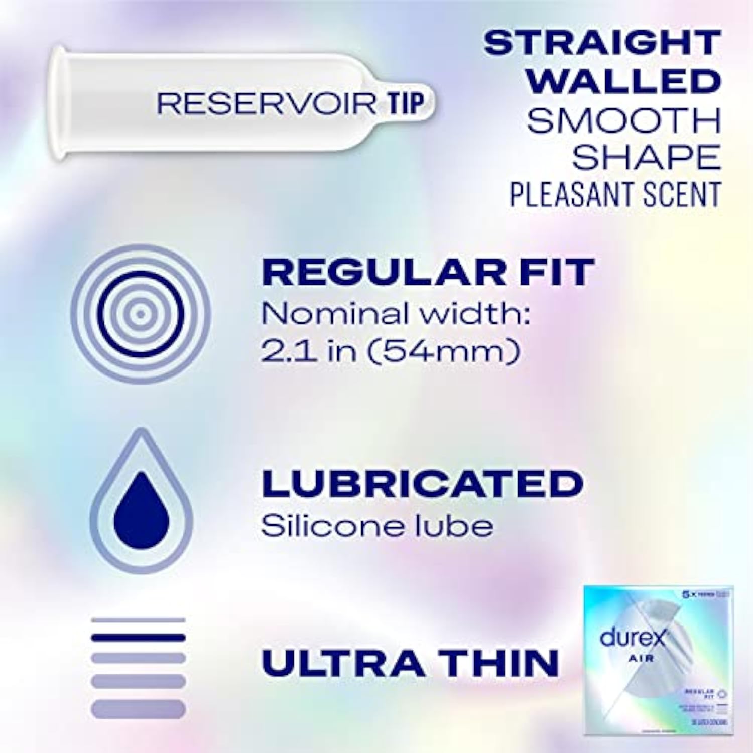 | DUREX AIR: These extra thin condoms are the perfect option for you and your partner to enjoy maximum sensitivity safely | | EXTRA THIN: Air condoms are the thinnest developed by Durex while providing a high level of protection against STI’s and pregnancy | | TRANSPARENT: Extra thin, lubricated and nearly see through; these condoms are made from premium quality, natural rubber latex | | Features ribs and dots for her and delay lubricant for him to prolong the pleasure | | Easy on shape makes condoms easier to put on and more comfortable to wear | | Each condom is 100% electroni
