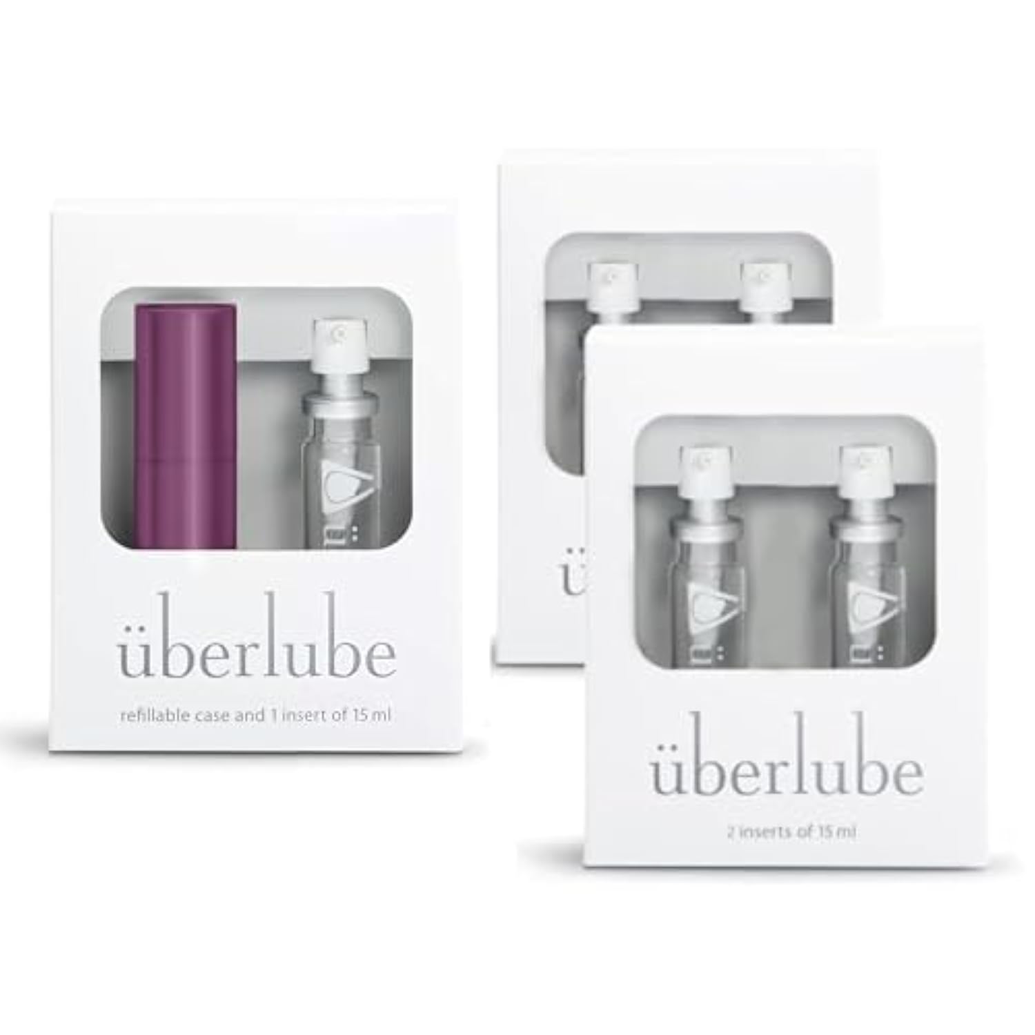 Eggplant Travel + 4 Refills Bundle - Eggplant Travel Lube Kit + 4 Refills, Unscented, Flavorless, Works Underwater - 75Ml Total