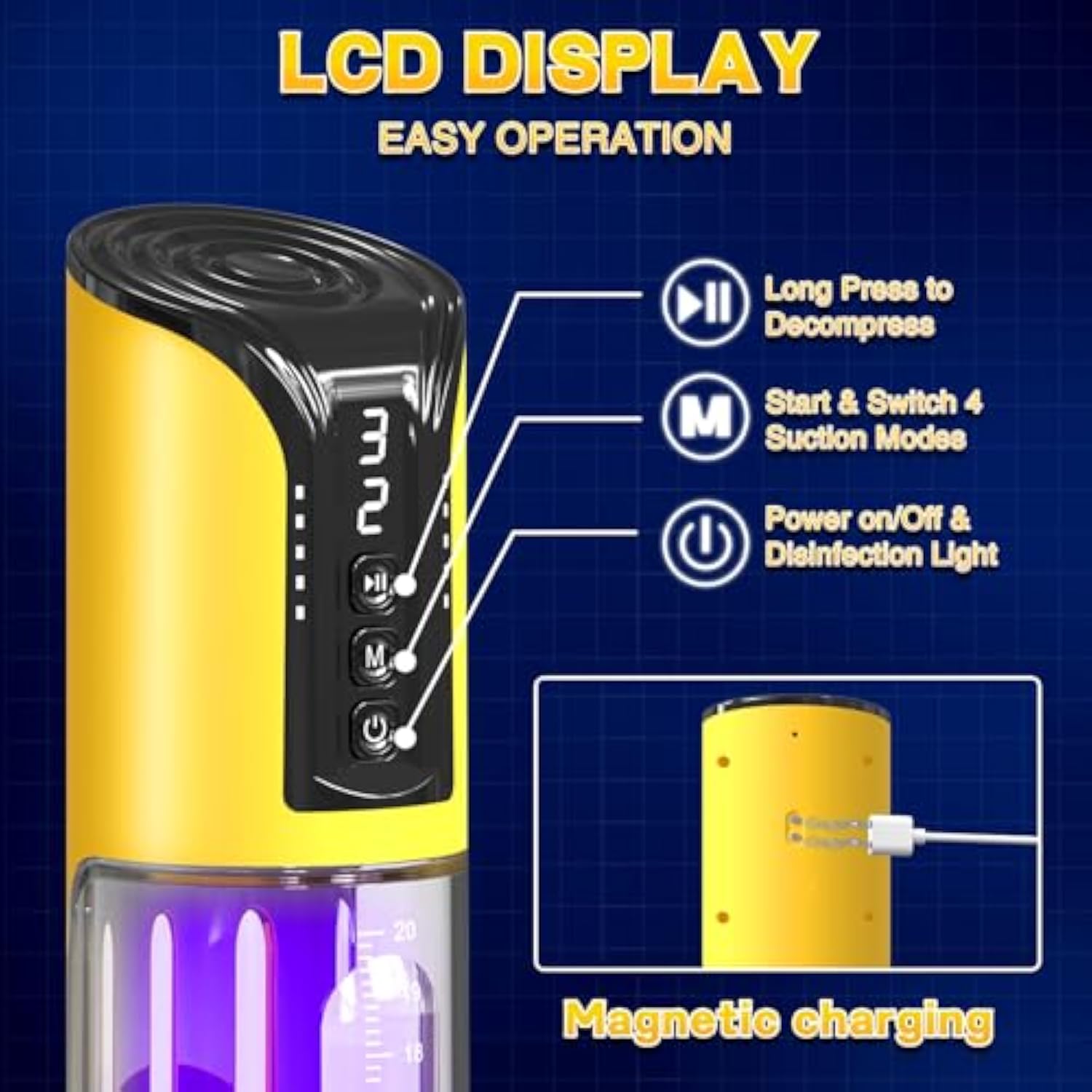 | Designed For Maximum Comfort And Effectiveness, This Pump Uses Gentle Vacuum Technology To Stimulate Blood Flow, Promoting Healthier And More Sustainable Erections.The Automatic Suction Function Eliminates Manual Effort, Allowing You To Enjoy A Seamless Experience. | | Newly Redesigned For A Superior Fit, Our Penis Pump Features An Extended Insertable Length Of 10.6 Inches—Longer Than Any Other Product On The Market. | | Designed For Both Beginners And Experienced Users, Our Premium Penis Pump Features An Instant-Release Safety Valve—Simply Press The Button To Stop Suction Immediately When You’Ve Reached Your Desired Firmness Or Need A Break. | | Achieve Your Desired Results With Precision Using Our Innovative Electric Penis Pump, Featuring 4 Adjustable Suction Modes For Personalized Training. Whether You'Re A Beginner Or An Experienced User, This Pump Allows You To Start Gently On Mode 1 And Gradually Increase Intensity For Safe, Effective Enhancement. | | The Main Materials Of The Penis Pump Are Body-Safe Silicone And Abs, Making It More Skin-Friendly And Soft Easy To Clean. In Addition,Simply Lubricate The Entry And Slide Inside, Then Use The Buttons To Select The Pumping Settings That Feel Right For You. | | ?? Warming Tips??: Please Don'T Use This Uv Light On Human Body, Pets, Plants. Don'T Direct Your Eyes. | |