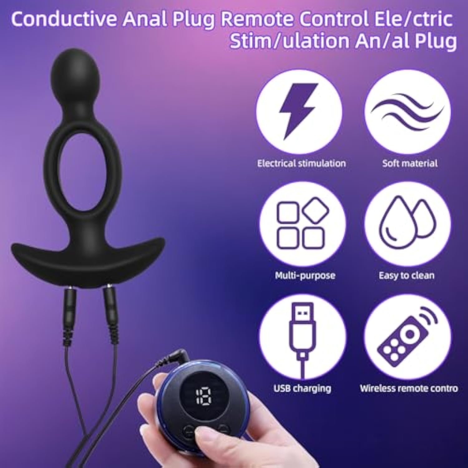 Electro Shock Trainer Kit, Electric Shock Soft Silicone Plug Butt Plug, Multi-Frequency Electric Stimulation Anal Plug Dilator, Sm Sex Toys Massager For Women, Men, Couples