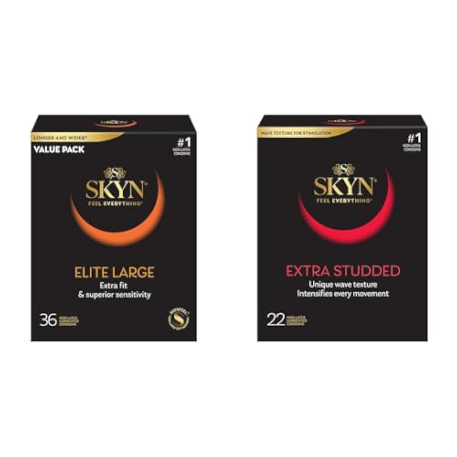 Elite Large 36 Count And Extra Studded 22 Count Ultra Thin Non-Latex Condoms