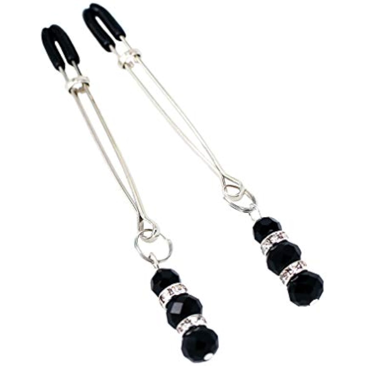 Elite Nipple Clamps, Silver Color With Black Pendant