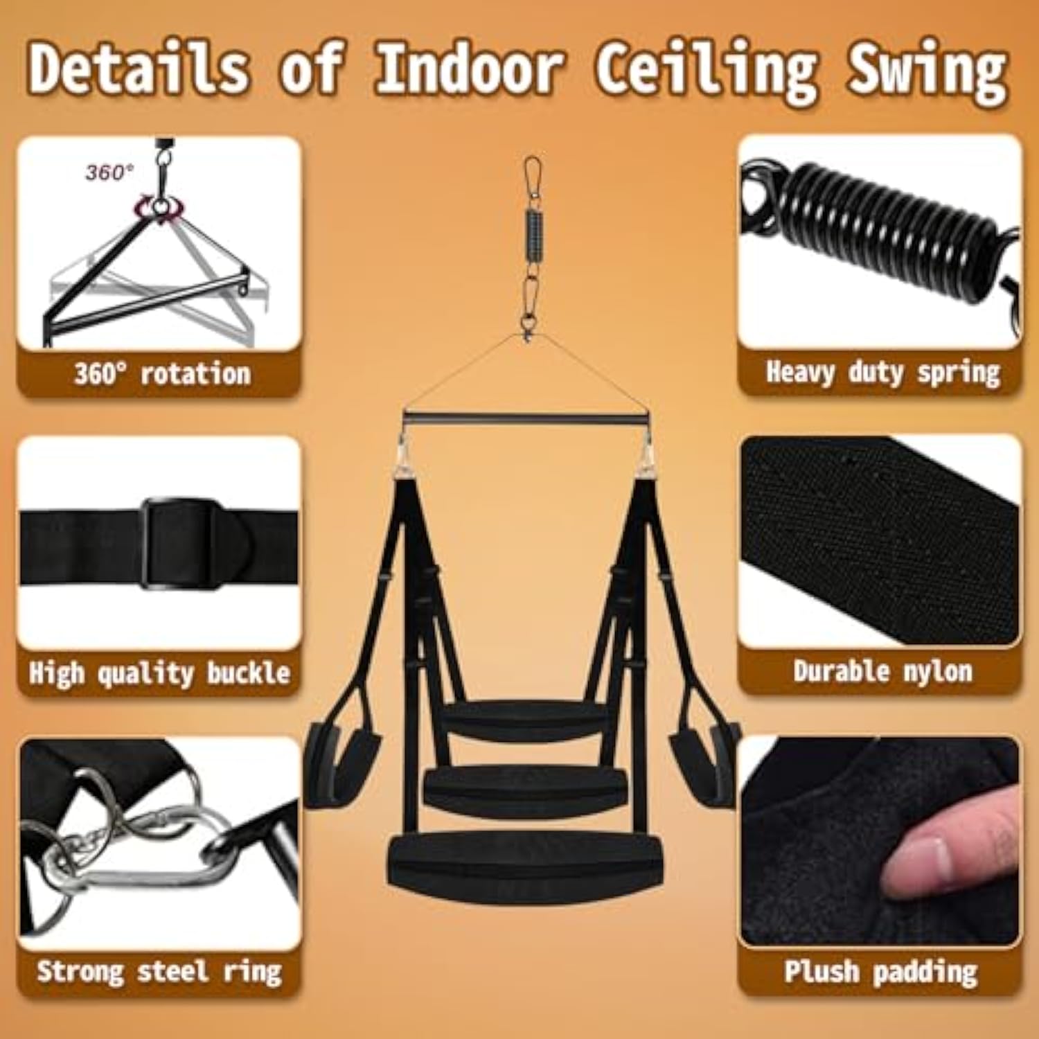 Enhanced Sex Swing Bdsm Bondage Sex Toys - Spinning Indoor Ceiling Swing With Triangular Suspension Device & Widened Neck Lumbar Hip Pads, Sex Swings With Adjustable Sling Adult Sex Toy